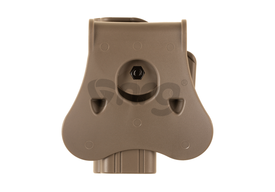 Avem placerea de a va prezenta tocul de pistol Amomax destinat platformelor G17-18C. Acest toc este gandit pentru atasarea direct pe centura sau pe echipamente tactice prevazute cu sisteme de prindere molle cu ajutorul unui adaptor. Este un toc rigid, fabricat din polimer plastic iar asigurarea pistolului in pozitie se realizeaza cu ajutorul unui buton de mari dimensiuni, usor accesibil. Avantajul acestui toc este usurinta de exploatare. Se fixeaza rapid pe centura iar odata fixat, introducerea si extragerea pistolului este extrem de rapida dar totodata sigura.Acest toc ofera posibilitatea de rotire a intregului ansamblu 360°.