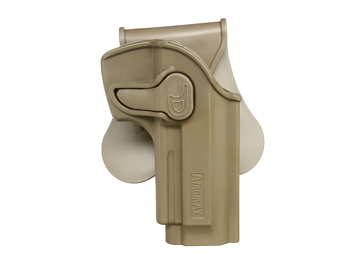 Avem placerea de a va prezenta tocul de pistol Amomax destinat platformelor Beretta seria M9/M92. Acest toc este gandit pentru atasarea direct pe centura sau pe echipamente tactice prevazute cu sisteme de prindere molle cu ajutorul unui adaptor. Este un toc rigid, fabricat din polimer plastic iar asigurarea pistolului in pozitie se realizeaza cu ajutorul unui buton de mari dimensiuni, usor accesibil. Avantajul acestui toc este usurinta de exploatare. Se fixeaza rapid pe centura iar odata fixat, introducerea si extragerea pistolului este extrem de rapida dar totodata sigura.Acest toc ofera posibilitatea de rotire a intregului ansamblu 360°.