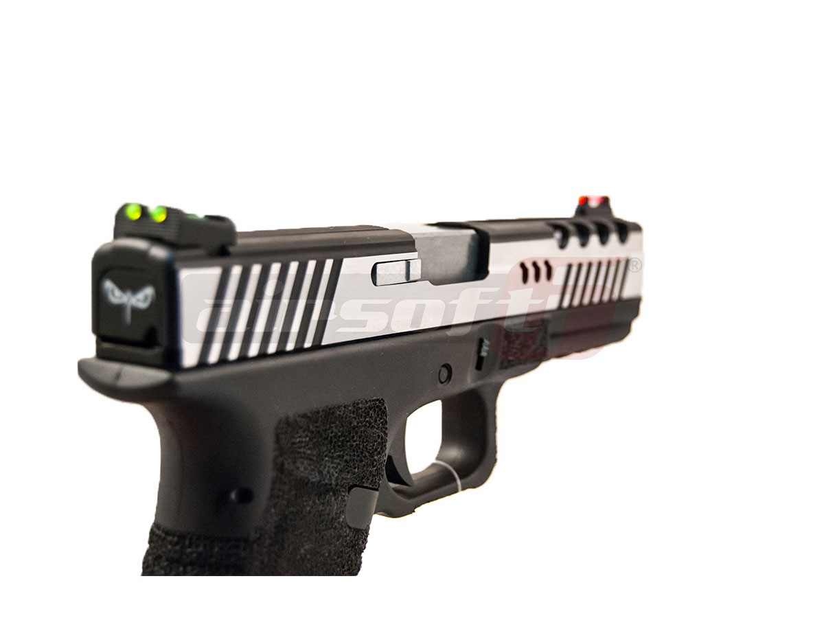 Mansonul este fabricat din metal si este prevazut cu sectiuni aderente pentru o armare usoara. Catarile sunt fixe dar corect aliniate si ajutate de fibra optima pentru o mai buna colimare. In partea dreapta exista slide catch-ul si mag catch-ul. Partea inferioara este realizata din plastic ABS. In partea frontala exista o sina standard pe care vor putea fi montate accesorii tactice. Manerul este prevazut cu o textura aderenta pentru imbunatatirea manevrabilitatii. Replica este prevazuta cu siguranta iar aceasta este amplasata pe tragaciul replicii.