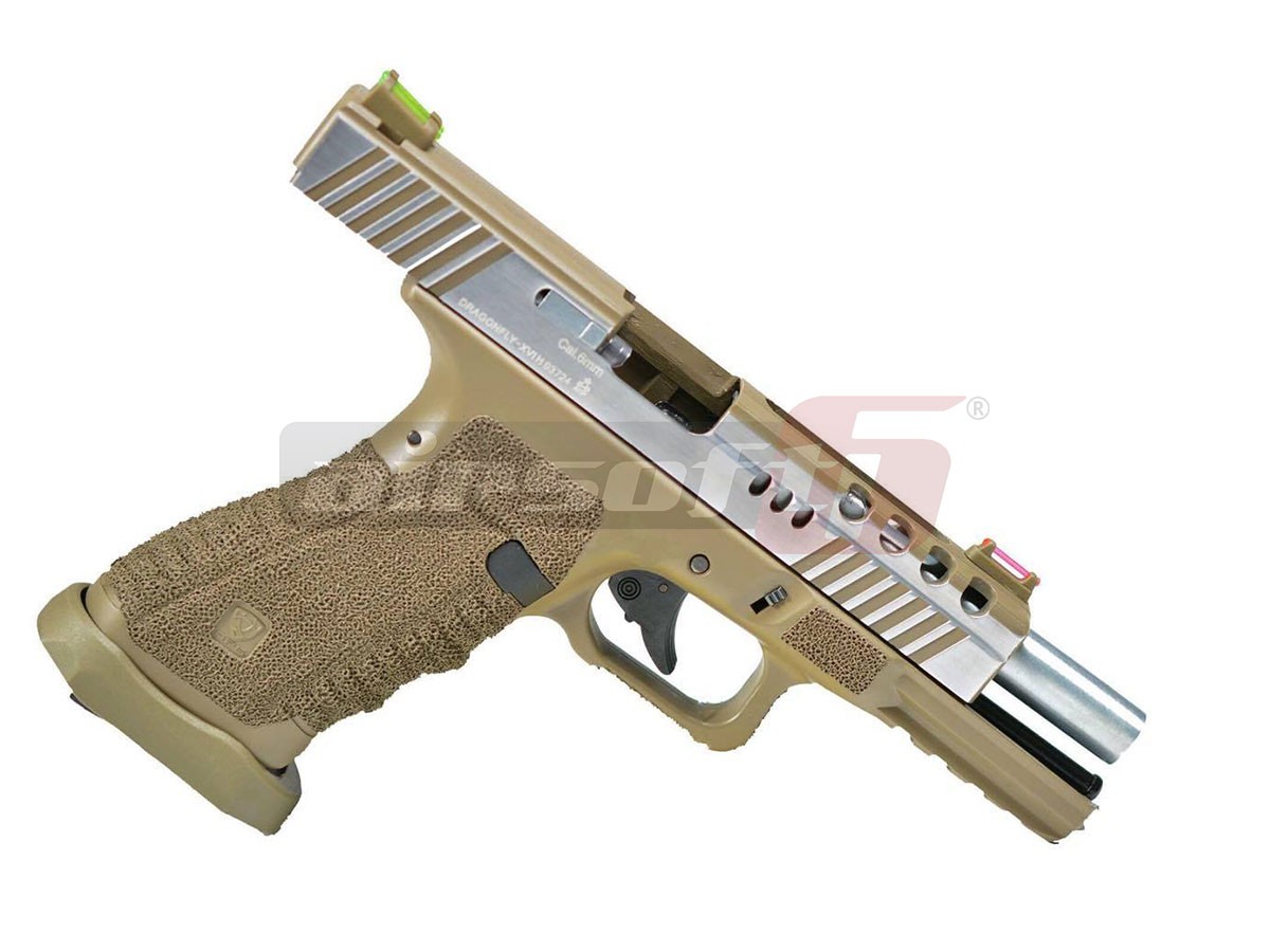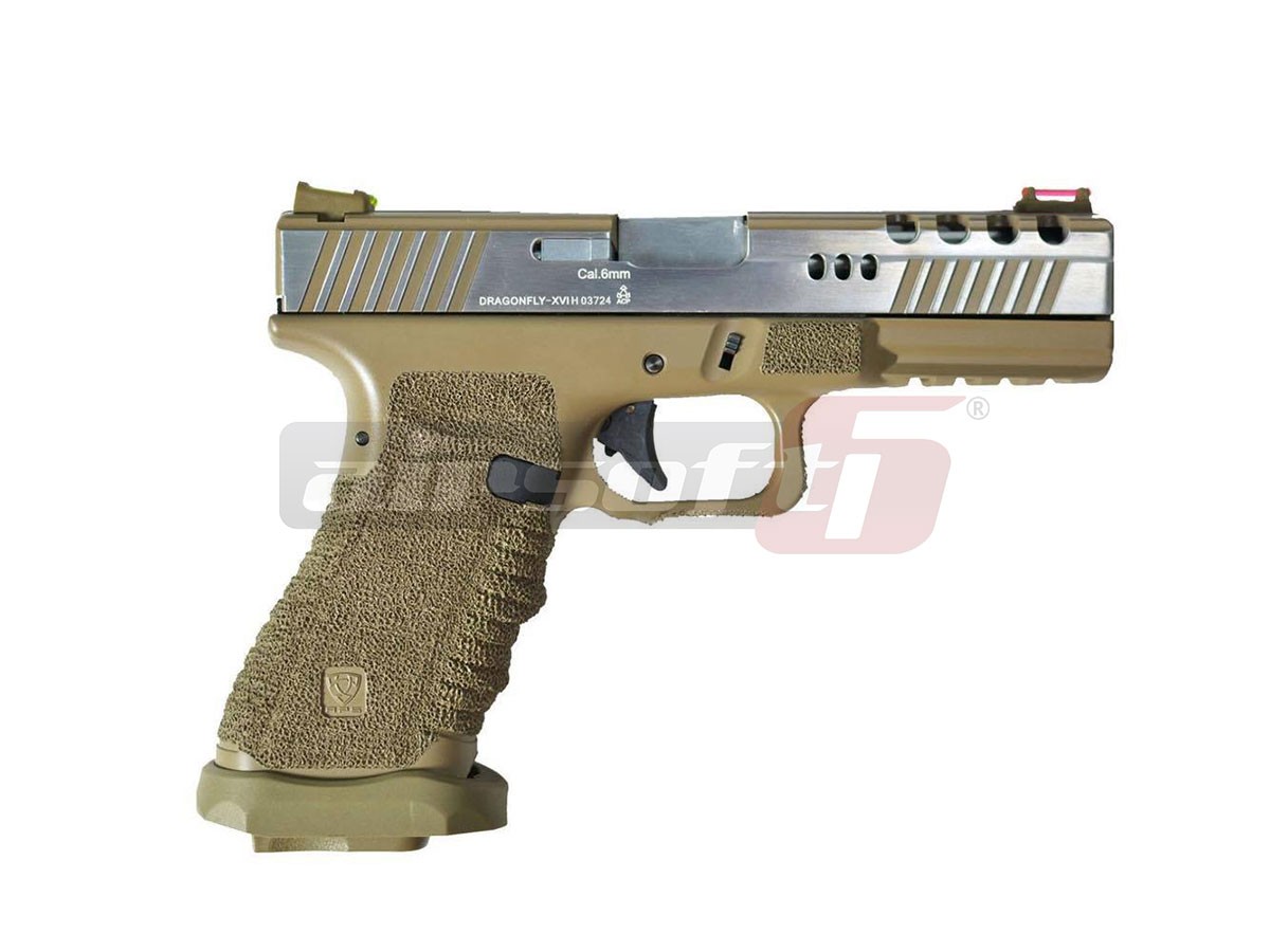 APS Dragonfly Dark Earth este un model oferit de APS pentru pasionatii replicilor custom. Platforma nu copiaza un pistol anume din lumea reala dar seama mult o anume platforma usor de recunoscut. In orice caz, utilitatea lui a fost adaptata de APS pentru a oferi utilizatorilor o experienta de calitate atunci cand il exploateaza pe teren.