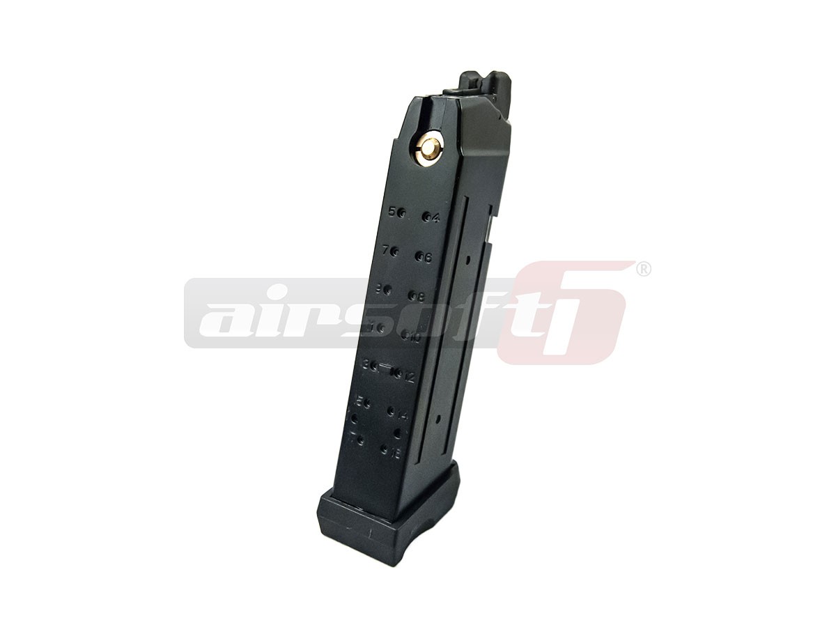 Incarcator produs de catre APS pentru pistoalele de airsoft seria APC601. Acest incarcator functioneaza pe baza de CO2 si este recomandata utilizarea lui doar cu replicile destinate functionarii si pe baza de CO2. Este construit din metal iar gura de alimentare cu bile este din plastic. Capacitatea incarcatorului este de 25 de bile de 6mm.