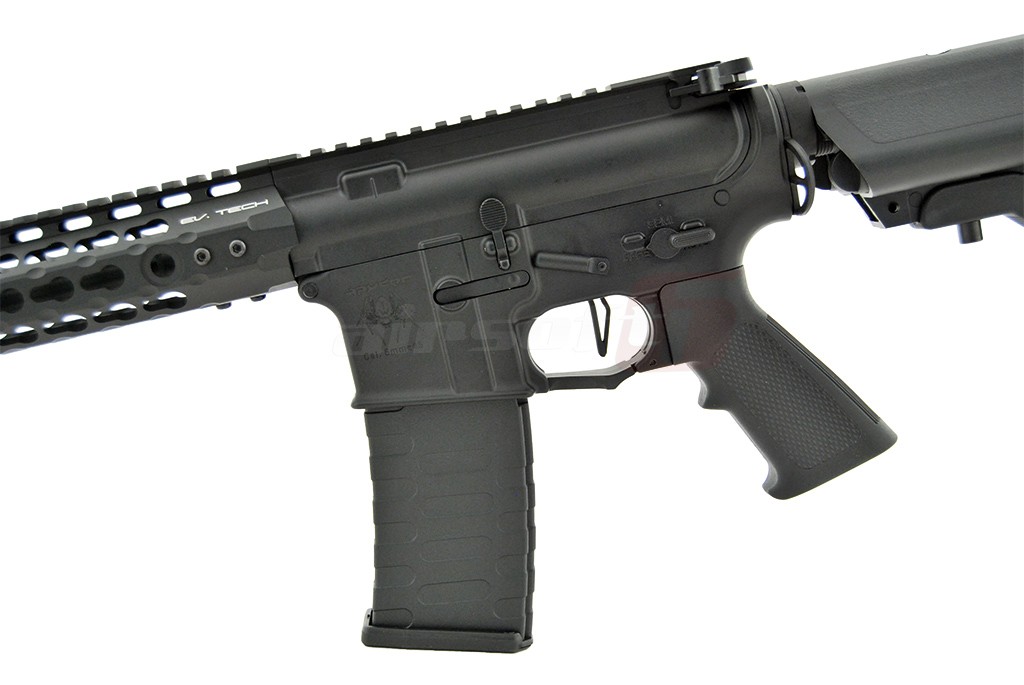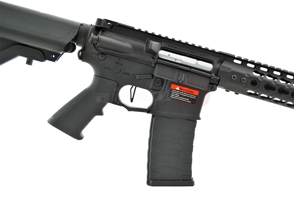 Replica prezentata face parte din seria Spyder mai exact modelul ASR 115. Dimensiunile acestei jucarii o recomanda pentru rolul de asalt. Producatorul a dotat aceasta minunata jucarie cu noul sistem frontal de sine Keymod, permitand astfel aranjarea sinelor intocmai cu preferintele fiecarui utilizator intr-un timp foarte scurt.
