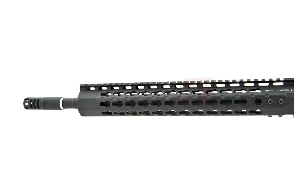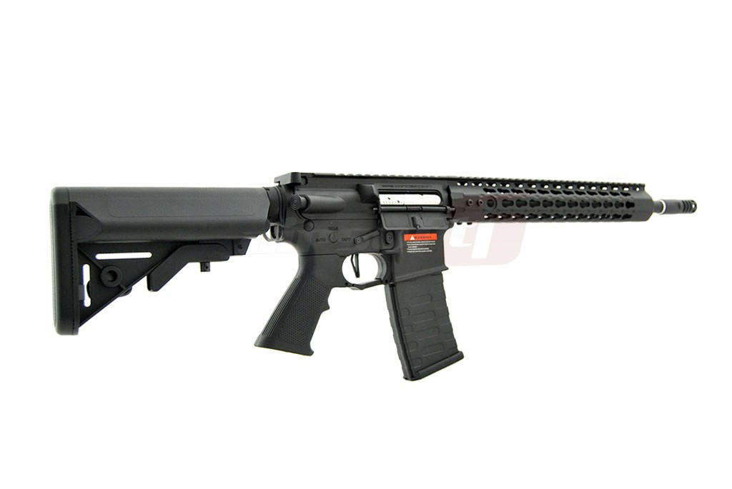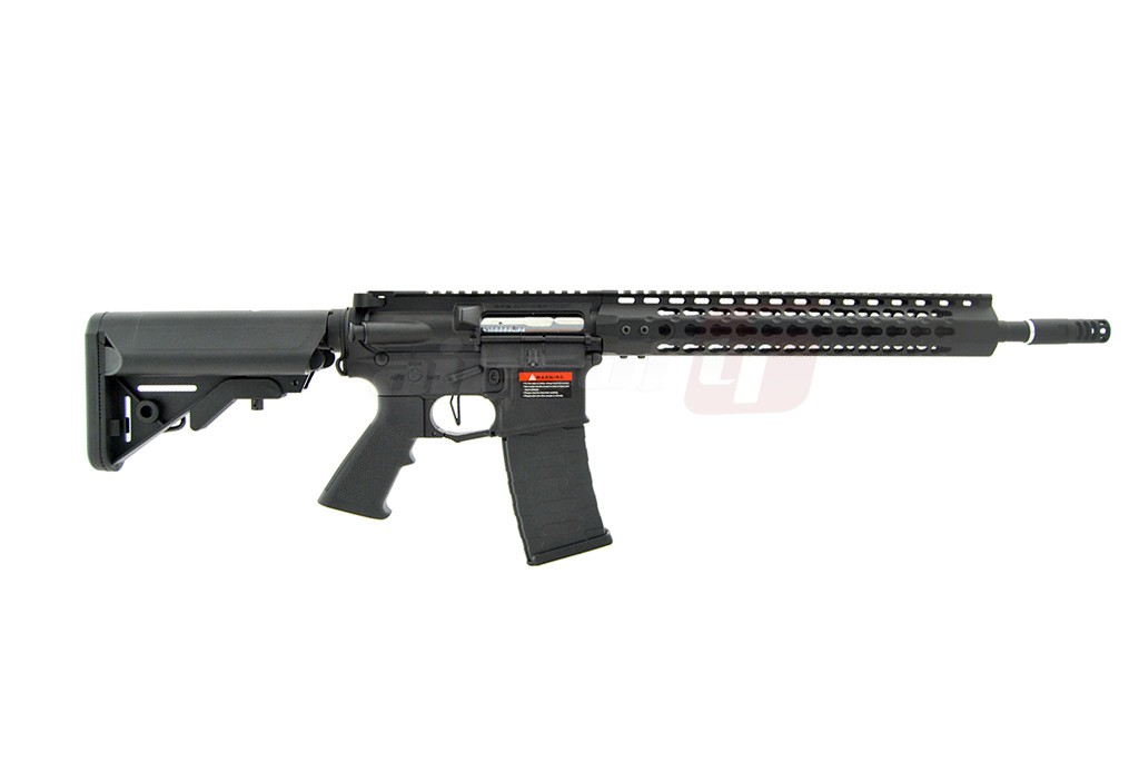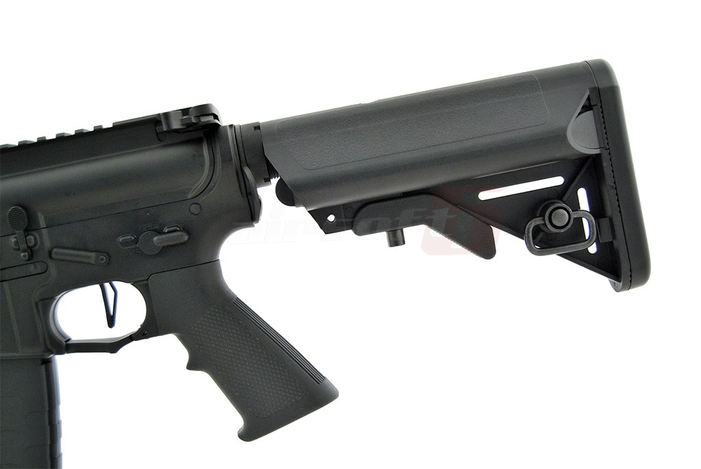 Aceasta replica de airsoft ASR 115 este fabricata in mare parte din aliaje metalice ce contribuie la o greutate scazuta imbunatatind manevrabilitatea si eficienta pe terenul de airsoft. Partea frontala constituie un sistem de sine modular inovativ numit KEYMOD, de tip free float de 12.5 inch. Acest sistem permite montarea si demontarea sinelor usor, sigur si rapid. Partea frontala a tevii externe poate fi indepartata permitand montarea unui amortizor sau a altor dispozitive. Pe toata partea superioara a replicii de airsoft exista o sina standard, permitand montarea unei game largi de dispozitive optice. Aceasta replica de airsoft este dotata si cu un sistem de ochire rabatabil cu fibra. Actionarea catarilor este manuala. Elementele din plastic ale acestei jucarii sunt manerul motorului si patul. Patul replicii de airsoft este reglabil de tip SOPMOD si permite montarea acumulatorilor de tip crane.