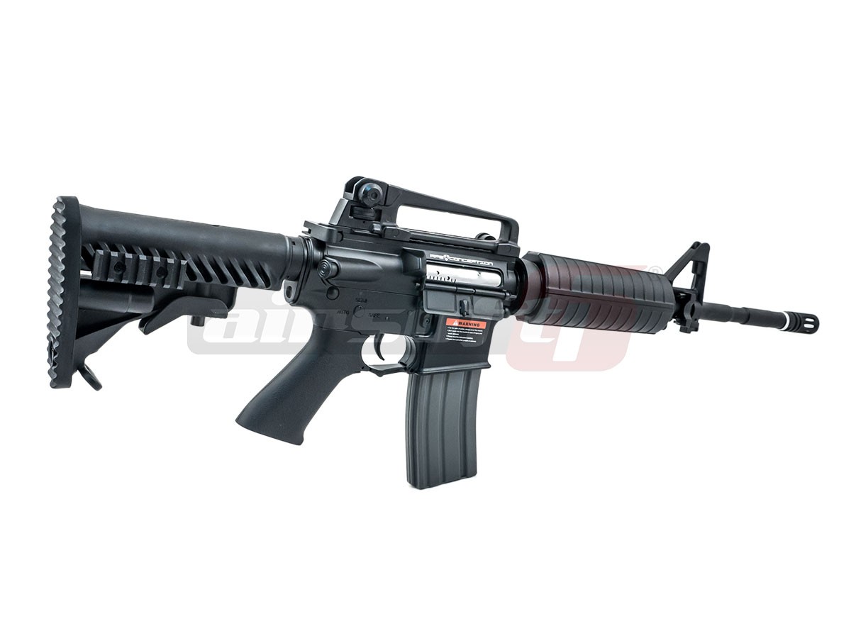 Raspunzator pentru actionare este un gearbox versiune 2 concept APS. La prima vedere pare a fi un gearbox V2 standard, vorbind strict de roti, piston, arc si alte componente marunte chiar sunt standard, carcasa in schimb este usor modificata pentru a permite montarea unui sistem blow back. Replica este prevazuta cu sistem de hopup reglabil, permitand prin aceasta cale o distanta de actiune apreciabila. Replica de fata este prevazuta cu bolt catch activ. Odata actionata parghia de armare tabla protectoare a portului ejector va ramane deschisa pana la actionarea bolt catch-ului, usurand mult reglajul nivelului de hopup. Viteza replicii de airsoft este de aproximativ 115-120 m/s masurata cu bile de 0.20g. Pentru performante optime recomandam bile de 0.25g