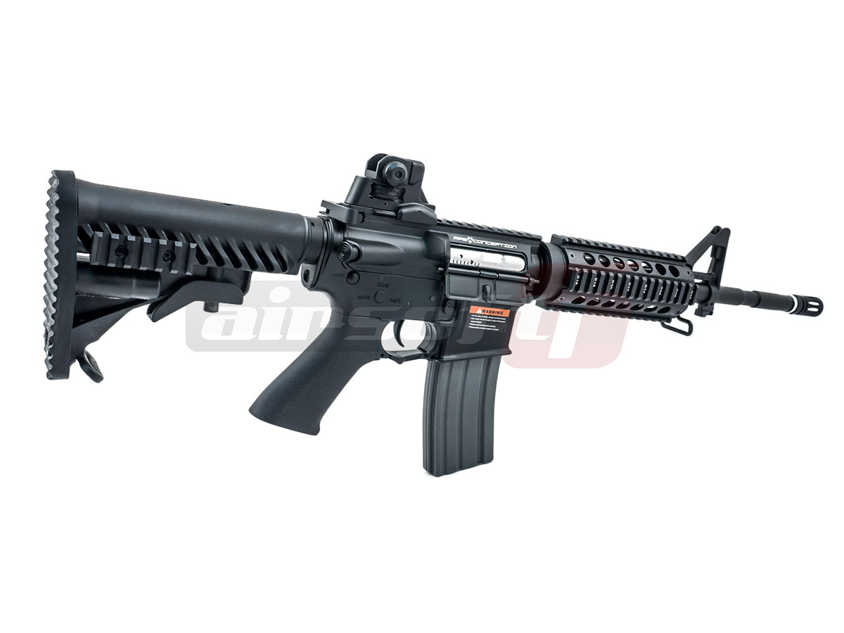 Raspunzator pentru actionare este un gearbox versiune 2 concept APS. La prima vedere pare a fi un gearbox V2 standard, vorbind strict de roti, piston, arc si alte componente marunte chiar sunt standard, carcasa in schimb este usor modificata pentru a permite montarea unui sistem blow back. Replica este prevazuta cu sistem de hopup reglabil, permitand prin aceasta cale o distanta de actiune apreciabila. Replica de fata este prevazuta cu bolt catch activ. Odata actionata parghia de armare tabla protectoare a portului ejector va ramane deschisa pana la actionarea bolt catch-ului, usurand mult reglajul nivelului de hopup. Viteza replicii de airsoft este de aproximativ 115-120 m/s masurata cu bile de 0.20g. Pentru performante optime recomandam bile de 0.25g
