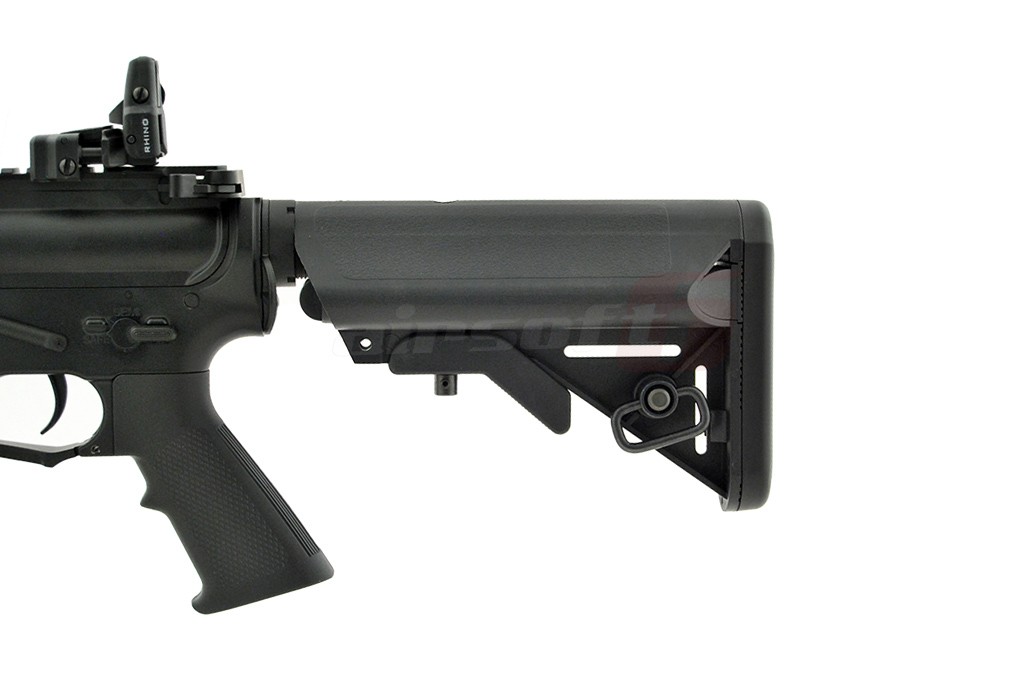 Replica prezentata face parte din seria Spyder mai exact modelul ASR 114. O replica de airsoft recomandata pentru asalt si CQB. Producatorul a dotat aceasta minunata jucarie cu noul sistem frontal de sine Keymod, permitand astfel aranjarea sinelor intocmai cu preferintele fiecarui utilizator intr-un timp foarte scurt.