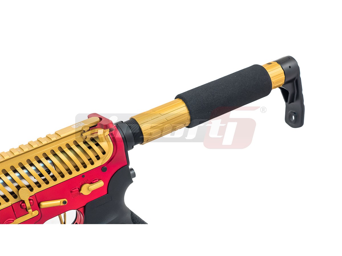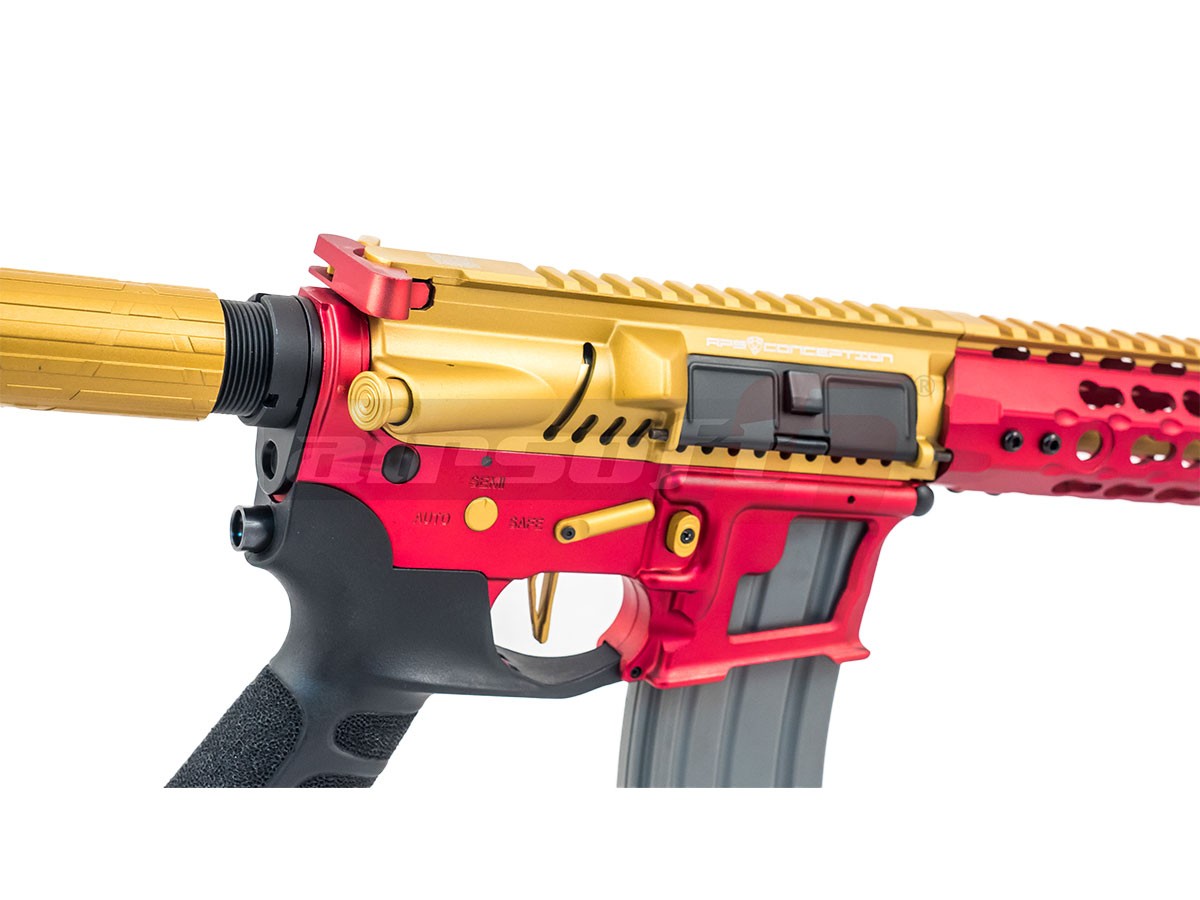 Raspunzator pentru actionare este un gearbox versiune 2 concept APS. La prima vedere pare a fi un gearbox V2 standard, vorbind strict de roti, piston, arc si alte componente marunte chiar sunt standard, carcasa in schimb este usor modificata pentru a permite montarea unui sistem blow back si pentru a permite indepartarea ghidajului fara demontarea carcasei. Facand astfel mult mai usoara operatiunea de inlocuire a arcului sau de interventie in gearbox.
