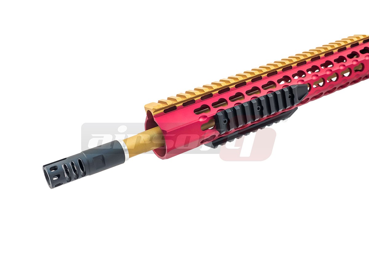 Aceasta replica de airsoft este fabricata in mare parte din aliaje metalice ce contribuie la o greutate scazuta imbunatatind manevrabilitatea si eficienta pe terenul de airsoft. Partea frontala constituie un sistem de sine modular numit KEYMOD, de tip free float. Acest sistem permite montarea si demontarea sinelor usor, sigur si rapid. Partea frontala a tevii externe poate fi indepartata permitand montarea unui amortizor sau a altor dispozitive. Pe toata partea superioara a replicii de airsoft exista o sina standard, permitand montarea unei game largi de dispozitive optice. Aceasta replica de airsoft este dotata si cu un sistem de ochire rabatabil cu fibra la 45 grade. Actionarea catarilor este manuala. Patul replicii de airsoft este fix si serveste la inmagazinarea acumulatorului.