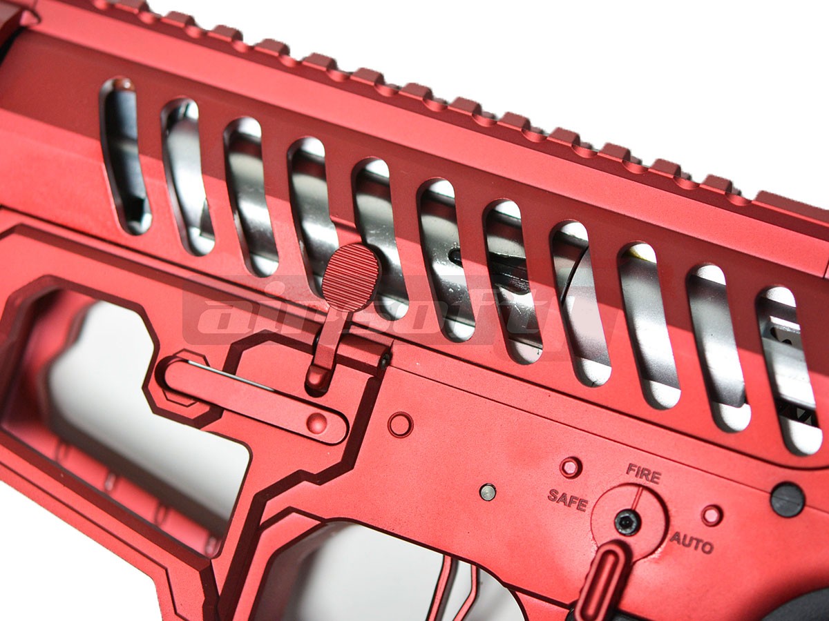 Raspunzator pentru actionare este un gearbox versiune 2 concept APS. La prima vedere pare a fi un gearbox V2 standard, vorbind strict de roti, piston, arc si alte componente marunte chiar sunt standard, carcasa in schimb este usor modificata pentru a permite montarea unui sistem blow back si pentru a permite indepartarea ghidajului fara demontarea carcasei. Facand astfel mult mai usoara operatiunea de inlocuire a arcului sau de interventie in gearbox.