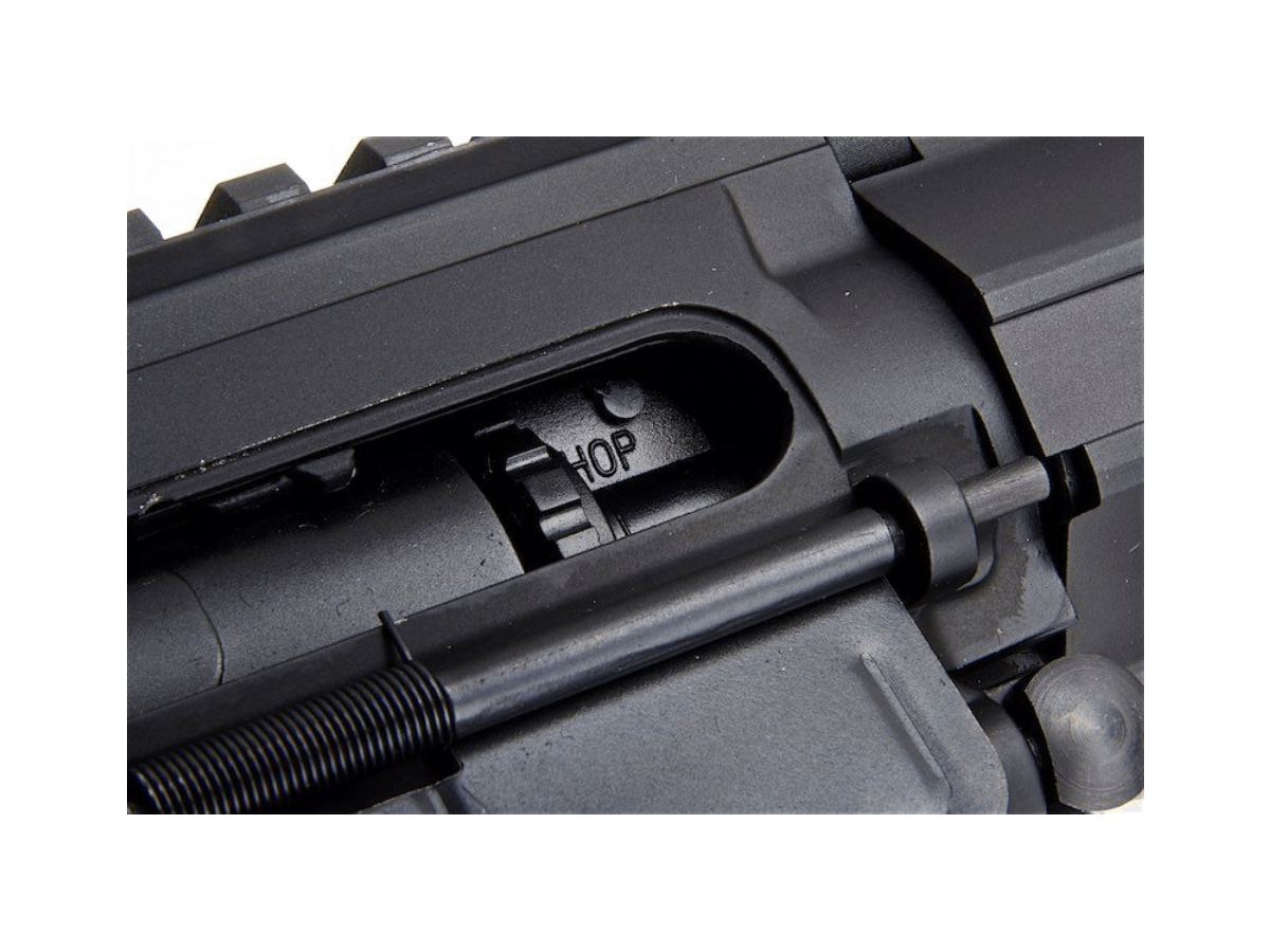 Arcutus a dotat aceasta replica cu un gearbox metalic, versiune 2, standard. Modelul gearbox-ului este generatia a 2-a, cea cu partea inferioara intarita penru a rezista cu succes in timp arcurilor puternice si cadentelor mari. Componentele interne precum rotile, pistonul dar si alte componente sunt standard. Camera de hopup este modelul rotativ. Acest model ne ofera un reglaj mult mai precis si mai stabil decat sistemul clasic.