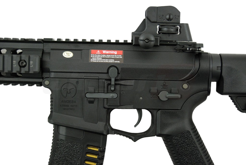 Aceasta replica este modelul 008 si asemenea celorlalte modele Amoeba, este realizat din material plastic. Nu este un lucru rau, acest aspect usureaza destul de mult greutatea totala a replicii. Sistemul frontal de sine este fabricat tot din material plastic scazand si mai mult greutatea replicii. Manerul si patul replicii sunt fabricate din plastic ABS. Tubul patului este fabricat din metal, deasemenea si sistemul de prindere al tevii externe. Patul replicii este reglabil iar in interiorul sau isi are loc acumulatorul. Capatul din spate poate fi usor indepartat prin actionarea unui buton. Replica este prevazuta cu un sistem clasic de ochire, reglabil. Butonul pentru eliberarea incarcatorului este marit pentru a permite un acces usor. Selectorul de tir este situat pe partea stanga.