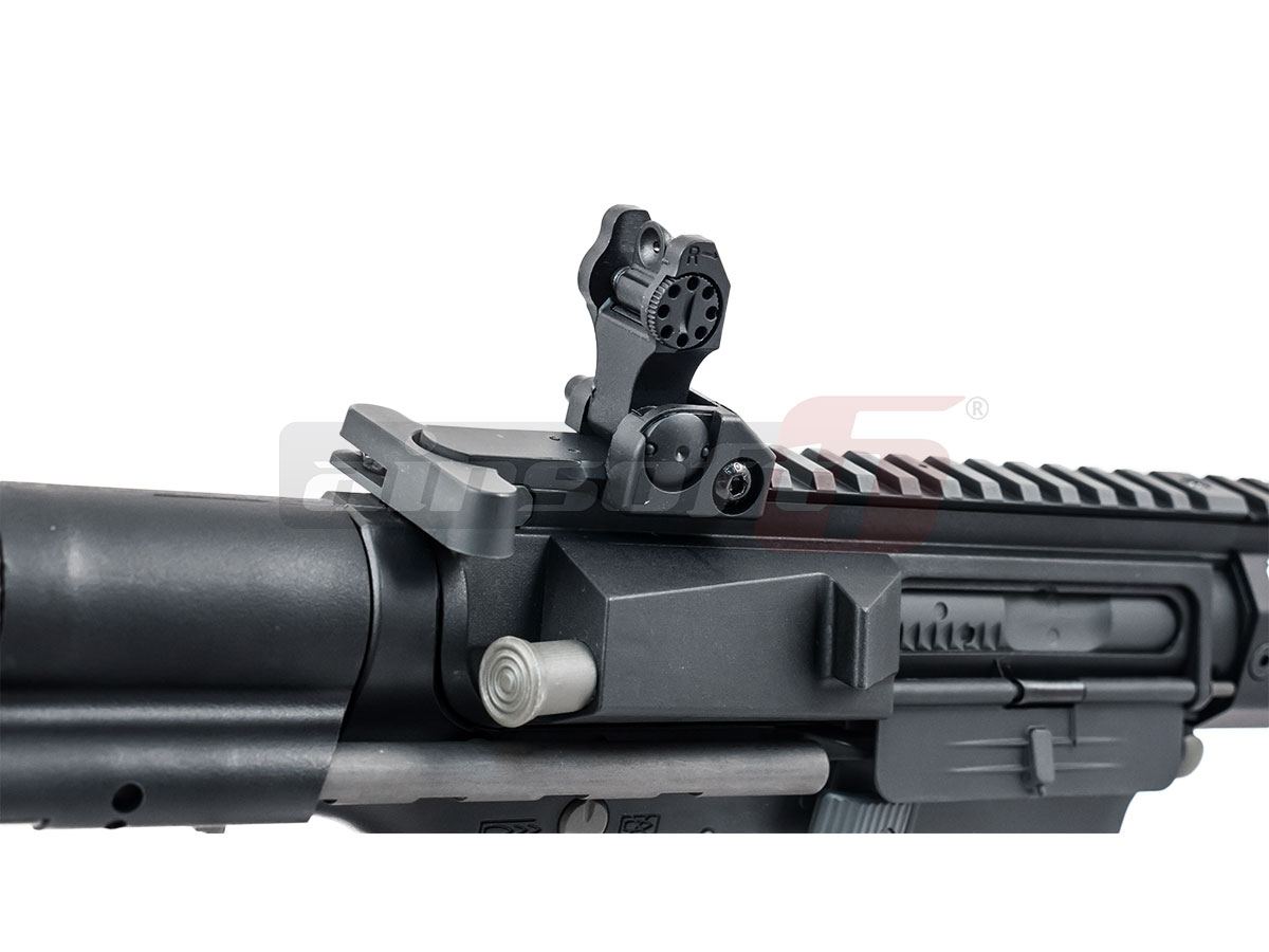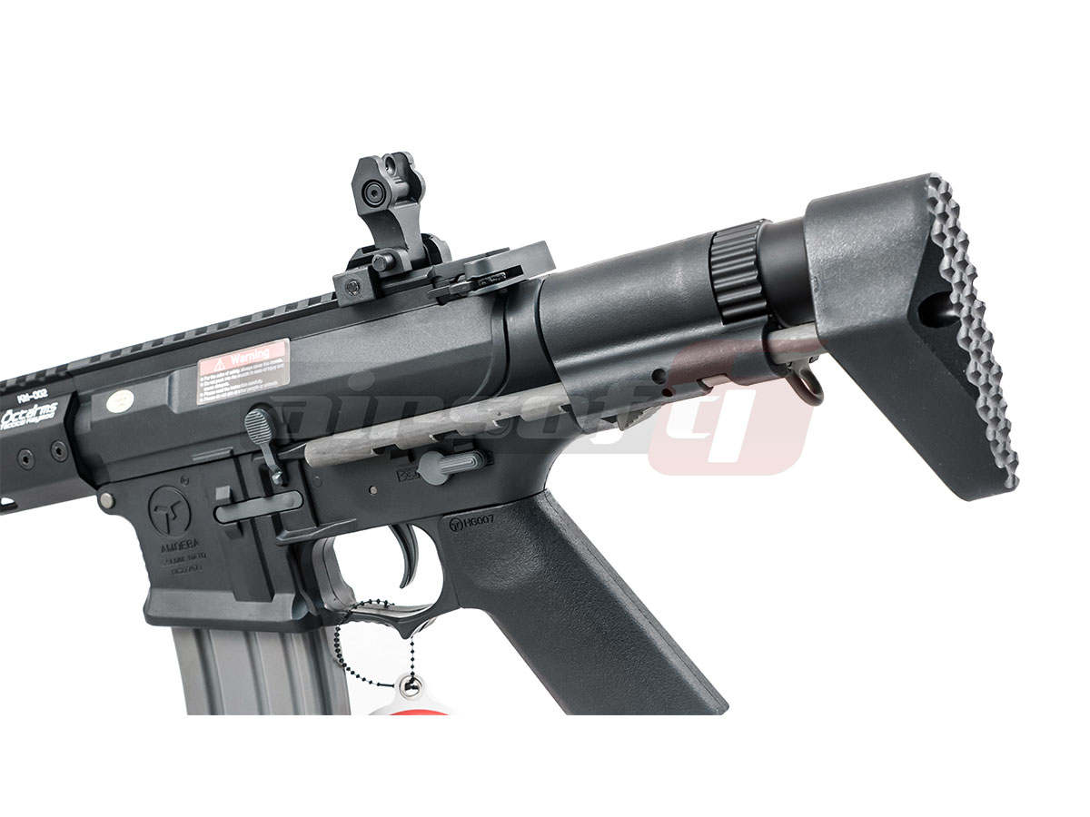 Aceasta replica este modelul 016 si asemenea celorlalte modele Amoeba, este realizat din material plastic. Nu este un lucru rau, acest aspect usureaza destul de mult greutatea totala a replicii. Sistemul frontal de sine, de tip KEYMOD si este fabricat din aluminiu. Sinele patului retractabil sunt realizate din metal iar partea din spate este din plastic. In spatele receiverului, alcatuind suportul patului, este spatiul de depozitare al acumulatorului. Replica este prevazuta cu un sistem clasic de ochire, rabatabil. Atentie, nu este reglabil in nici un fel. Butonul pentru eliberarea incarcatorului este marit pentru a permite un acces usor. Selectorul de tir este situat pe partea stanga.