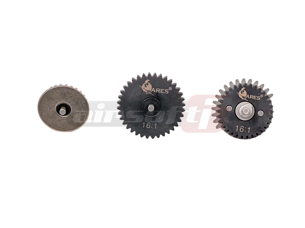 Roti high speed marca Ares. Fabricate din otel de calitate, aceste roti au un raport de 16:1 obtinand astfel cu aceleasi turatii ale motorului existent o cadenta de tir mai mare. Acest set de roti este recomandat jucatorilor ce doresc o usoara imbunatatire a cadentei de tir si a fiabilitatii replicii.