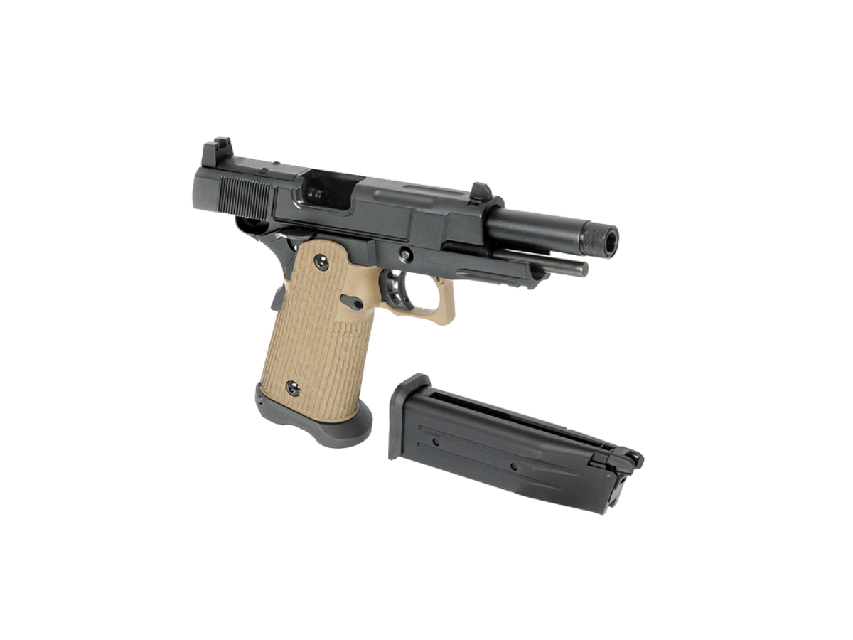 O replica de airsoft deosebita bazata pe platforma 2011 care la randul ei provine din clasicul 1911. Aceasta platforma spre deosebire de modelul anterior are un incarcator cu o capacitate marita folosind asezarea in zig-zag a cartuselor si micsorand calibrul dar marind astfel dimensiunile manerului si a sasiului. Un pistol impunator ce nu se lasa neobservat.