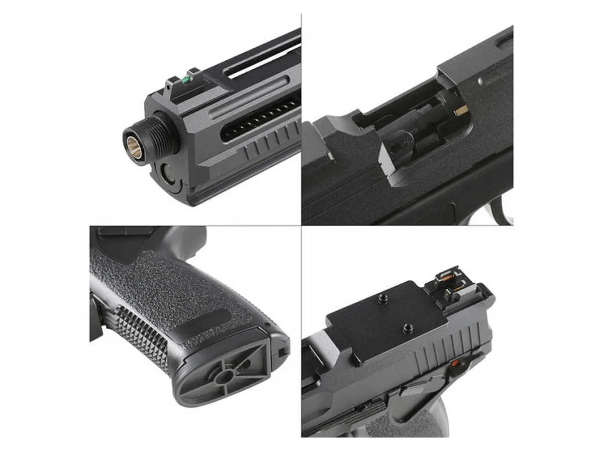 Replica de airsoft functioneaza cu orice tip de gaz, de la 144a pana la Sniper Gas, singurul parametru care se modifica este puterea cu care trage. In conditii normale de exploatare replica de airsoft poate actiona pana la 70 de bile cu o incarcare de gaz.. In incarcator pot fi inmagazinate 24 de bile. Replica de airsoft are o viteza de pana la 85-90 metri pe secunda masurati cu bile de 0.20g folosind Green Gas puternic.