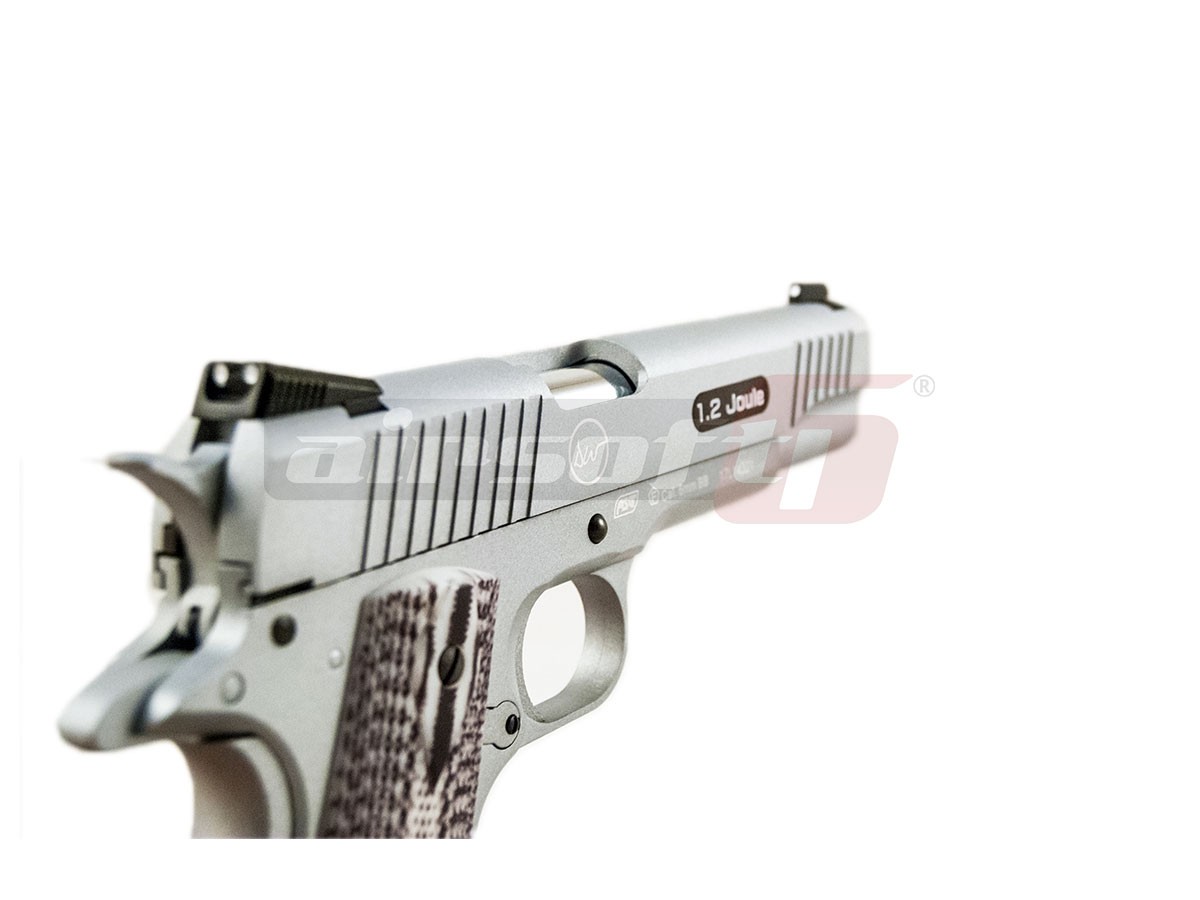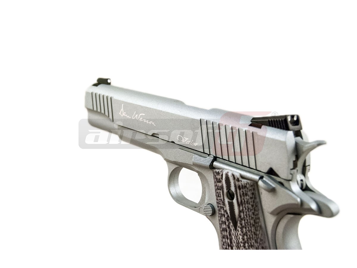 Replica de airsoft Dan Wesson Valor 1911 fabricat de ASG este copie 1:1 cu arma reala. Constructia este din metal, fapt ce ofera o senzatie specifica manuirii unei arme reale. Functionalitatea replicii este intocmai cu autenticul 1911. Efectul de recul in momentul actionarii pistolului este puternic, contribuind la nota de autenticitate a acestei replici de airsoft.