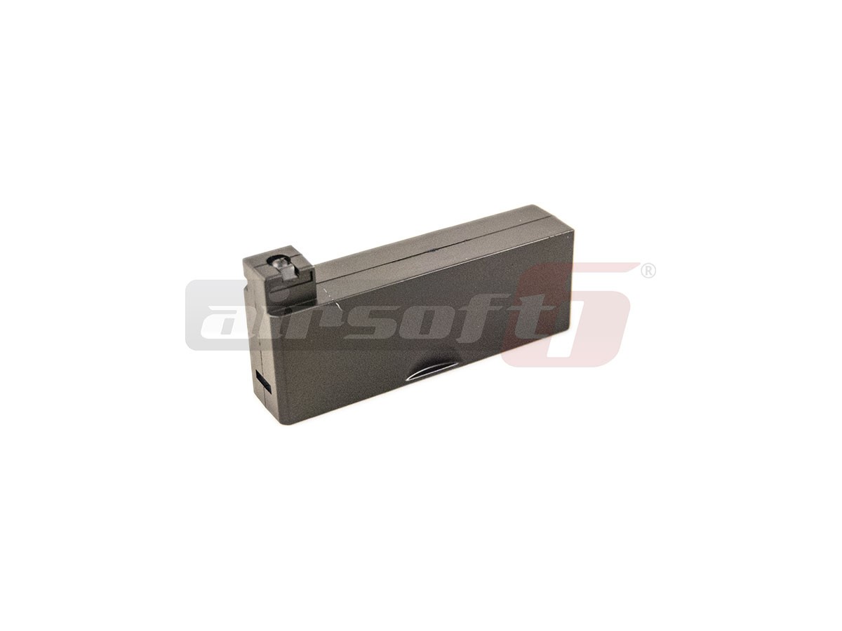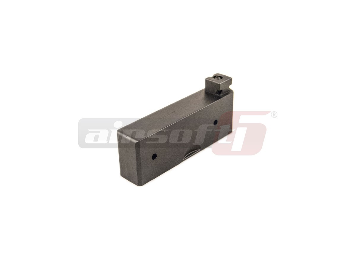 Acest incarcator este destinat modelelor de sniper M40A3. Este fabricat din plastic si poate inmagazina pana la 27 de bile de 6mm. Functionarea lui este pe baza de arc iar alimentarea cu bile se realizeaza prin orificiul destinat alimentarii replicii.