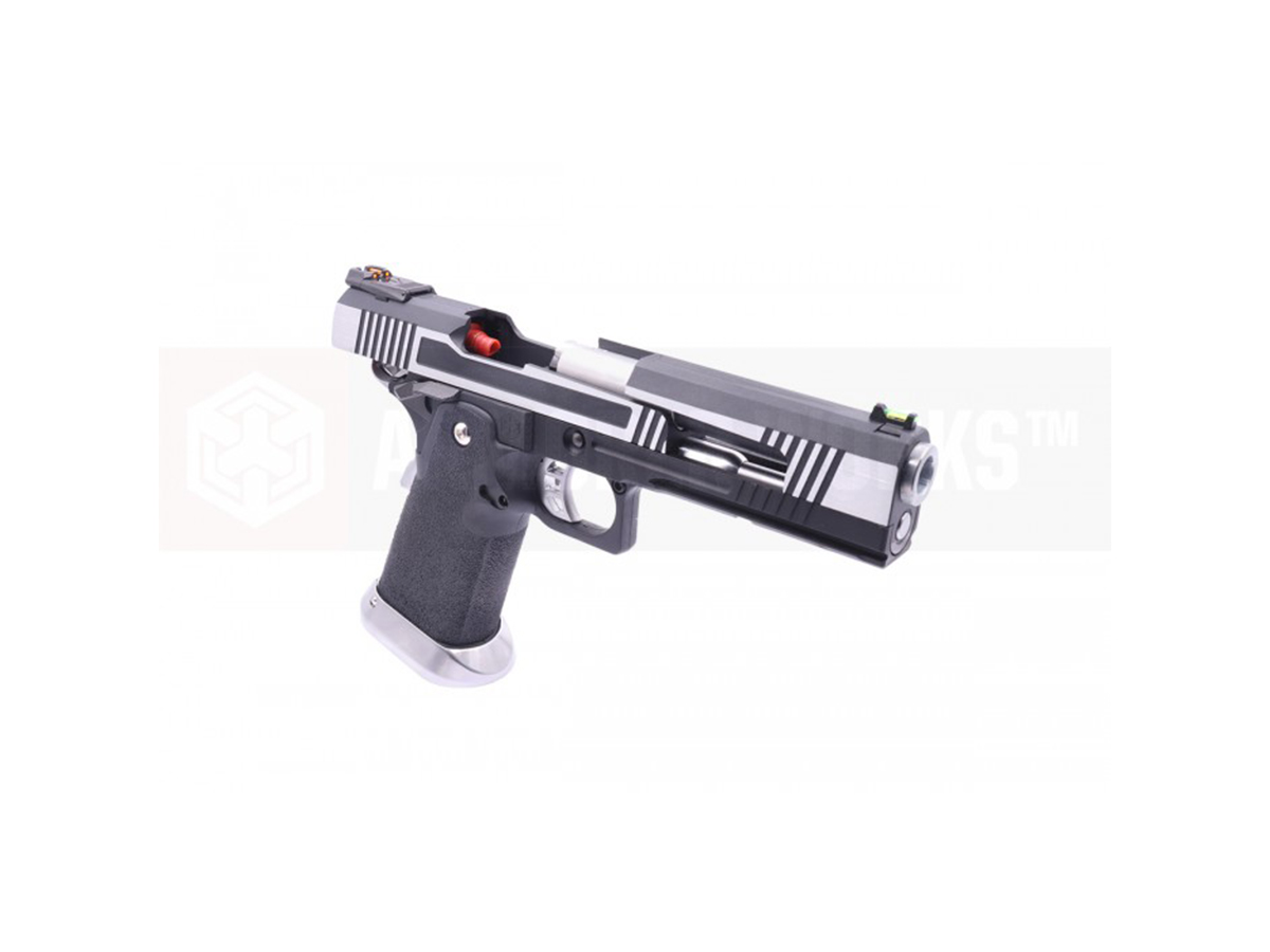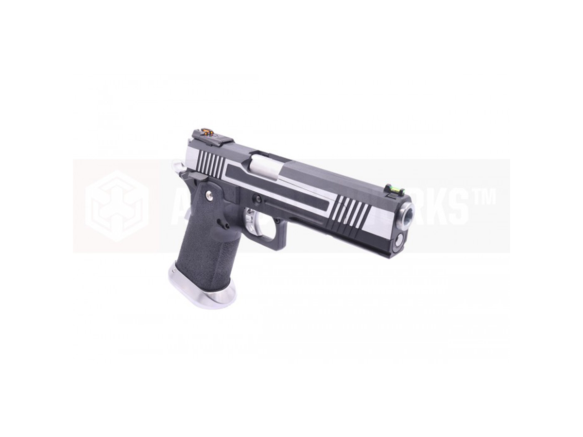 AW Custom HX1031 ste construit aproape in intregime din metal, manerul fiind realizat din plastic iar toate elementele specifice hicapa sunt unde trebuie sa fie, piedica activa situata pe maner si siguranta pentru cocos, specifice clasicului 1911.
