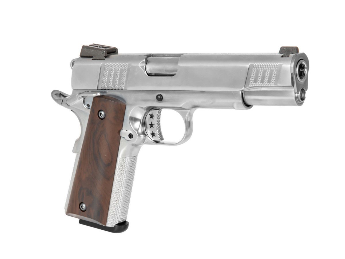 Aceasta replica comercializata de catre AW Custom este fabricata in totalitate din metal, realizata cu masini CNC, cu ajutorul careia au fost gravate marcajele. Catarile replicii sunt reglabile si bine orientate. Sigurantele replicii sunt dupa cum urmeaza: Siguranta pentru tragaci, situata in partea din spate a manerului. Astfel fara o prindere ferma in mana, tragaciul nu poate fi actionat. Mai exista o siguranta pentru cocos. Aceasta siguranta este ambidextra si poate fi utilizata doar cand cocosul este armat. Funtionarea replicii este asemanatoare armei adevarate. Pentru armare, mansonul trebuie armat. Moment in care mecanismul intern este armat iar o bila este alimentata pe teava. Pistolul este prevazut cu recul ,asemanea armei adevarate, aceasta miscare servind la alimentarea urmatoarei bile si rearmarea mecanismului.
