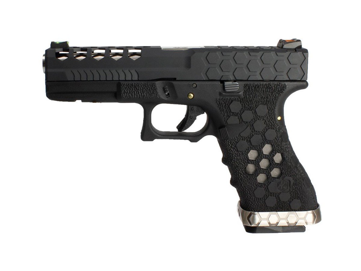 Te ai plictisit de designul standard al pistoalelor din seria 1911? Seria Hex-Cut include o varietate de modele ergonomice, cu diverse lungimi, modele de tragaci, nuante si decupaje. Replica pistol VX0101 Metal face parte dintr-o generatie de replici gata customizate de cei de la AW Custom. Aceasta replica atrage cu siguranta atentia datorita designului sau si a materialelor de inalta calitate.