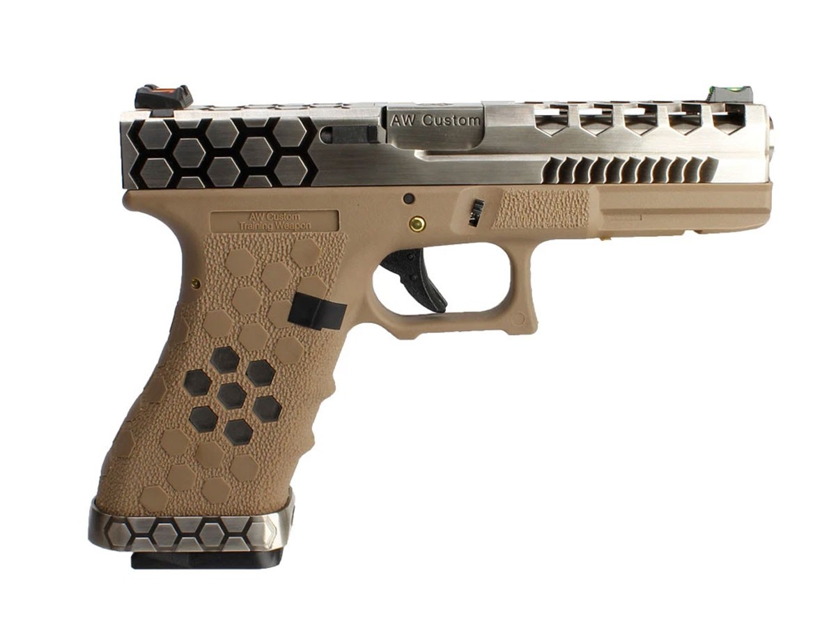 AW Custom se straduieste sa ofere jucatorulor airsoft pistoale de inalta calitate cu un design modern. Fiecare pistol nou care este fabricat de WE a fost modificat cu caracteristici noi care imbunatatesc confortul, performanta si eficienta pistolului.