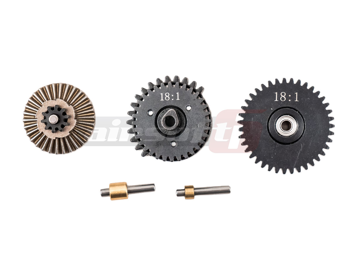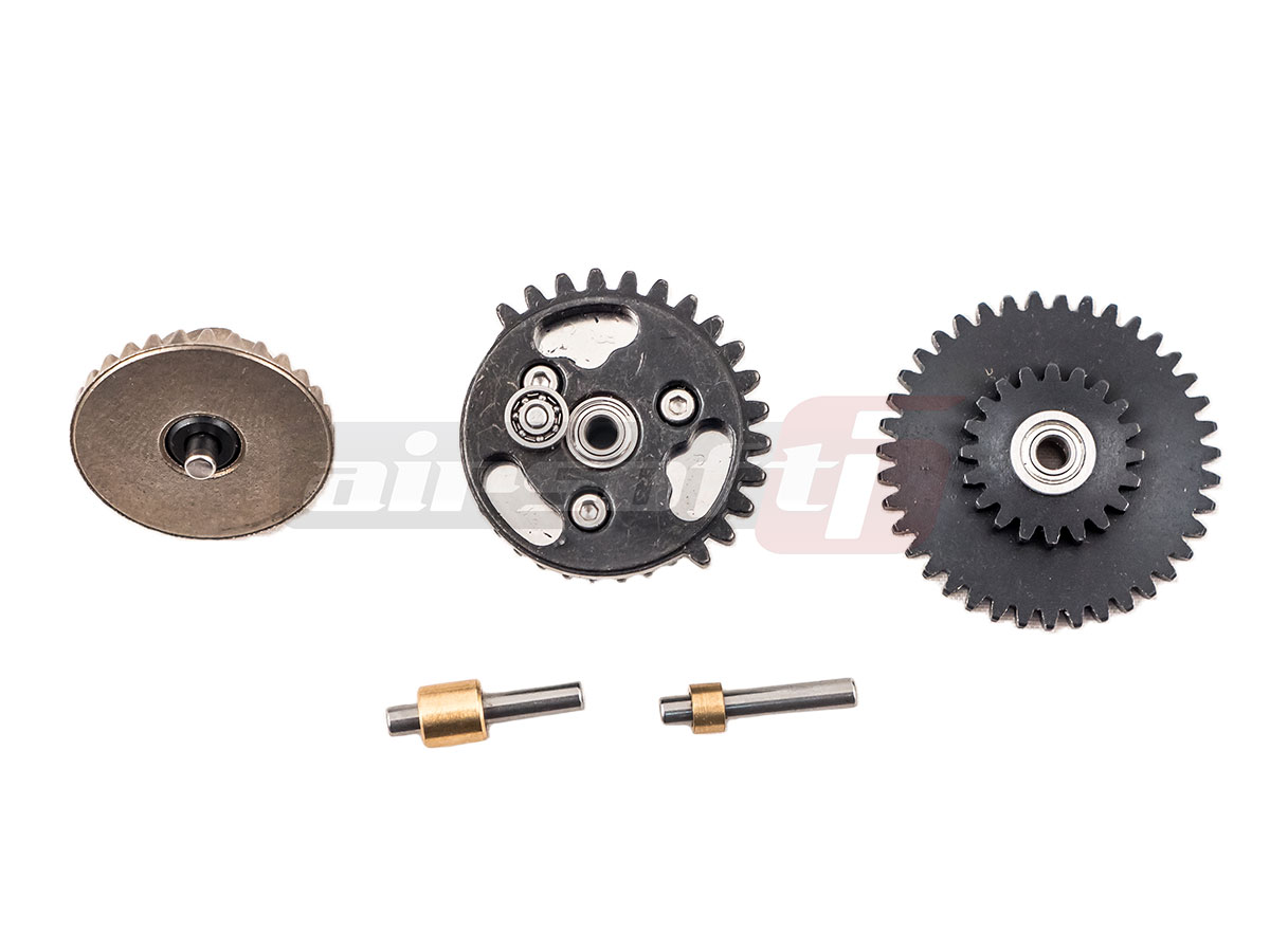Un set de roti destinat inlocuirii rotilor standard fabricatie BD Custom.. Aceste roti sunt fabricate din otel prelucrat CNC si sunt prevazute cu rulmenti pe axe pentru reducerea frictiunii. Cama pentru actionarea tappet plate-ului este deasemenea prevazuta cu rulment pentru imbunatatirea randamentului. Raportul lor este de 18 - 1, raport normal.
