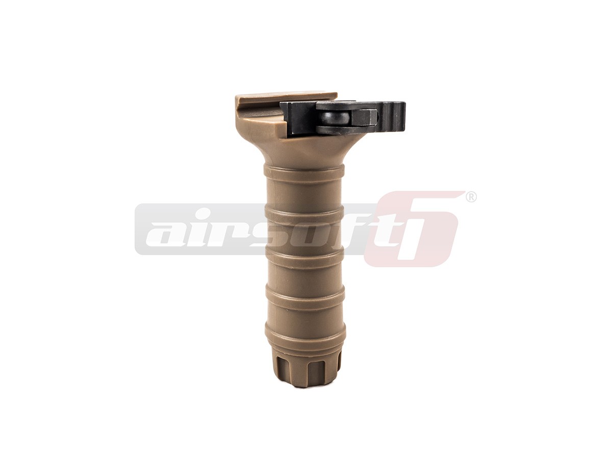 Maner vertical cu prindere pe sina clasica de 22mm fabricat din plastic ABS de calitate, iar surubul este din metal. Este un maner comformatbil pentru utilizator. Pe suprafata lui textura este poroasa mermitand un grip foarte fix atat cu manusi cat si fara imbunatatind mult manevrabilitatea replicii in timpul actiunii. Se fixeaza cu ajutorul sistemului de detasare rapida din partea superioara care pentru montare se slabeste si pentru fixare se strange.