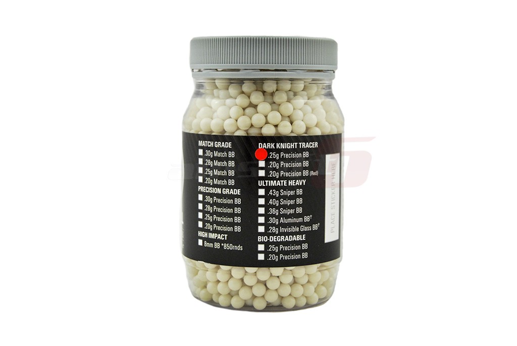 Bile pentru airsoft marca Madbull cu destinatie speciala. Aceste bile sunt fosforescente si se utilizeaza impreuna cu un sistem de iluminare special destinat acestor bile. Sistemele de iluminare cele mai des intalnite sunt fie in incarcatorul cu bile, camera de hopup sau cel mai simplu amortizor sau tracer.