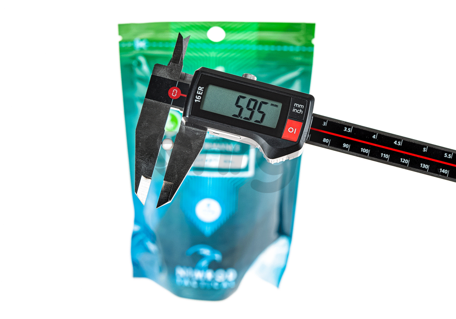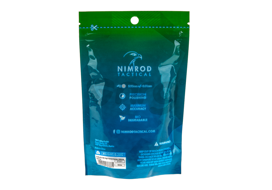 Bile de precizie fabricate de Nimrod. Bilele au o greutate de 0.20g si un diametru de 6 mm. Aceste bile sunt fabricate din compusi organici nontoxici astfel in anumite conditii de temperatura si umiditate se descompun fara urme. Finisarea acestor bile este extraordinara, luciul obtinut in urma numeroaselor procese de slefuire, este unul aproape perfect. Alimentarea cu bile a replicii este fara probleme iar alunecarea pe teava interna este cat se poate de lina. Precizia obtinuta prin folosirea acestor bile este una foarte buna datorata consistentei materialului din care sunt fabricate.