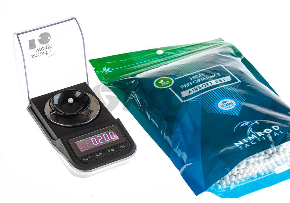 Bile de precizie fabricate de Nimrod. Bilele au o greutate de 0.20g si un diametru de 6 mm. Aceste bile sunt fabricate din compusi organici nontoxici astfel in anumite conditii de temperatura si umiditate se descompun fara urme. Finisarea acestor bile este extraordinara, luciul obtinut in urma numeroaselor procese de slefuire, este unul aproape perfect. Alimentarea cu bile a replicii este fara probleme iar alunecarea pe teava interna este cat se poate de lina. Precizia obtinuta prin folosirea acestor bile este una foarte buna datorata consistentei materialului din care sunt fabricate.