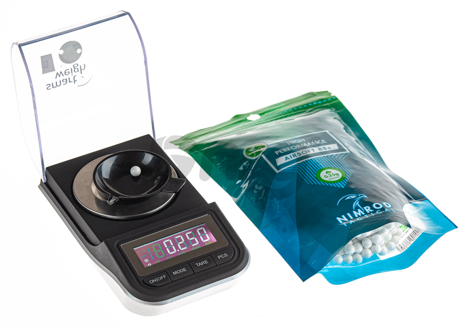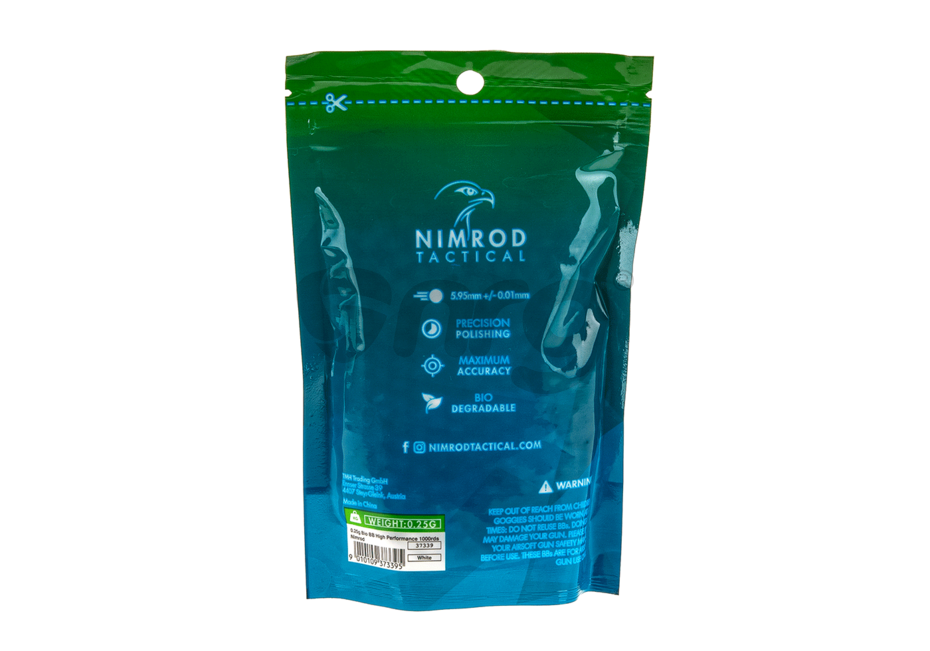 Bile de precizie fabricate de Nimrod. Bilele au o greutate de 0.25g si un diametru de 6 mm. Aceste bile sunt fabricate din compusi organici nontoxici astfel in anumite conditii de temperatura si umiditate se descompun fara urme. Finisarea acestor bile este extraordinara, luciul obtinut in urma numeroaselor procese de slefuire, este unul aproape perfect. Alimentarea cu bile a replicii este fara probleme iar alunecarea pe teava interna este cat se poate de lina. Precizia obtinuta prin folosirea acestor bile este una foarte buna datorata consistentei materialului din care sunt fabricate.