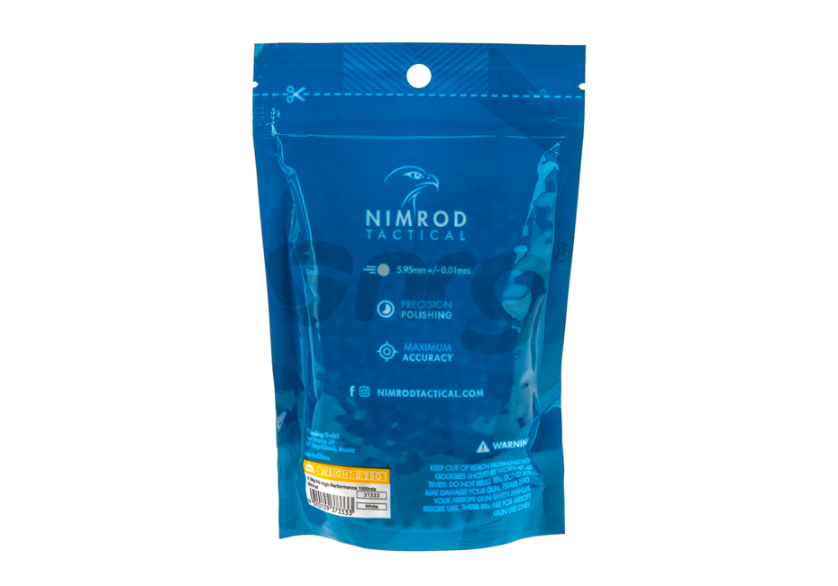 Bile de precizie High Performance fabricate de Nimrod. Bilele au o greutate de 0.28g si un diametru de 5.95 mm. Aceste bile sunt fabricate din compusi organici nontoxici astfel in anumite conditii de temperatura si umiditate se descompun fara urme. Finisarea acestor bile este extraordinara, luciul obtinut in urma numeroaselor procese de slefuire, este unul aproape perfect. Alimentarea cu bile a replicii este fara probleme iar alunecarea pe teava interna este cat se poate de lina. Precizia obtinuta prin folosirea acestor bile este una foarte buna datorata consistentei materialului din care sunt fabricate.