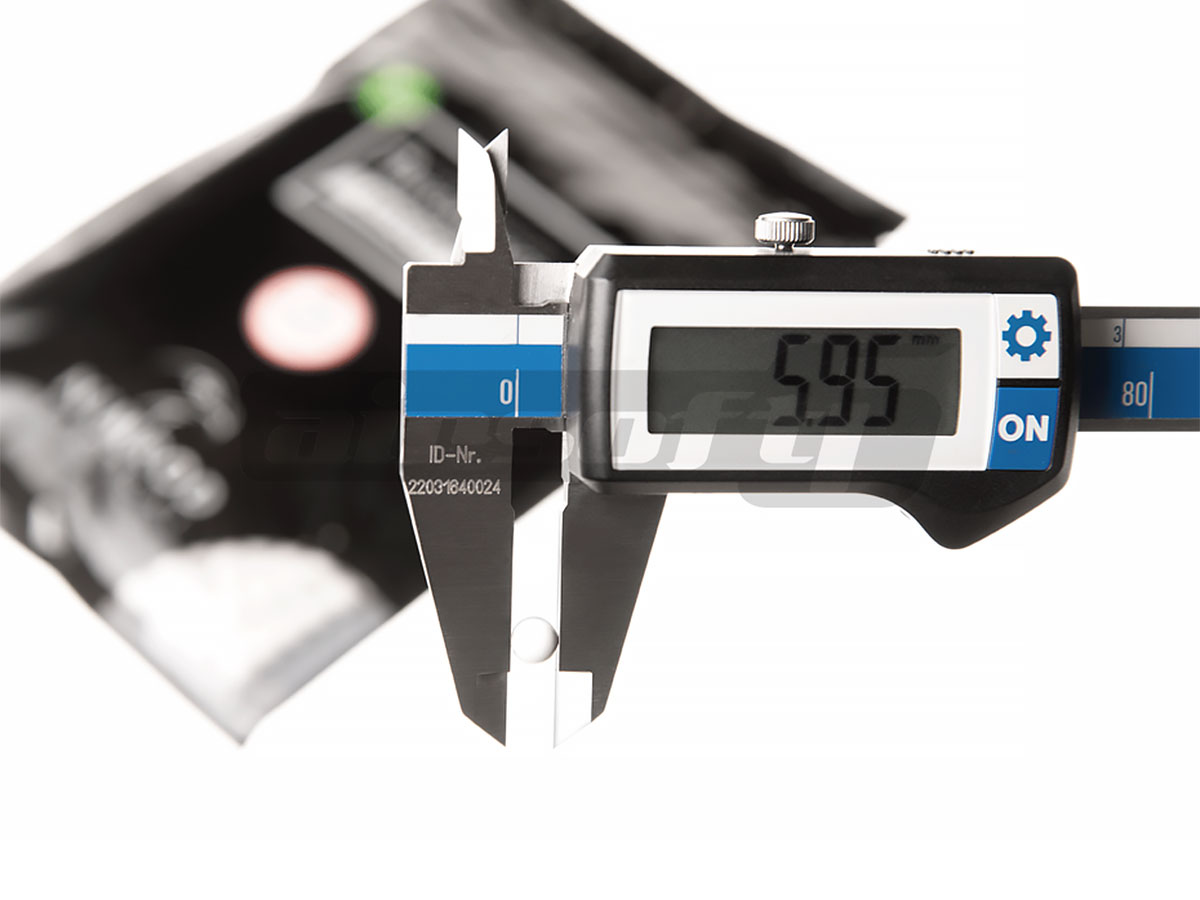 Bile de precizie fabricate de Nimrod. Bilele au o greutate de 0.43g si un diametru de 6 mm. Aceste bile sunt fabricate din compusi organici nontoxici astfel in anumite conditii de temperatura si umiditate se descompun fara urme. Finisarea acestor bile este extraordinara, luciul obtinut in urma numeroaselor procese de slefuire, este unul aproape perfect. Alimentarea cu bile a replicii este fara probleme iar alunecarea pe teava interna este cat se poate de lina. Precizia obtinuta prin folosirea acestor bile este una foarte buna datorata consistentei materialului din care sunt fabricate.