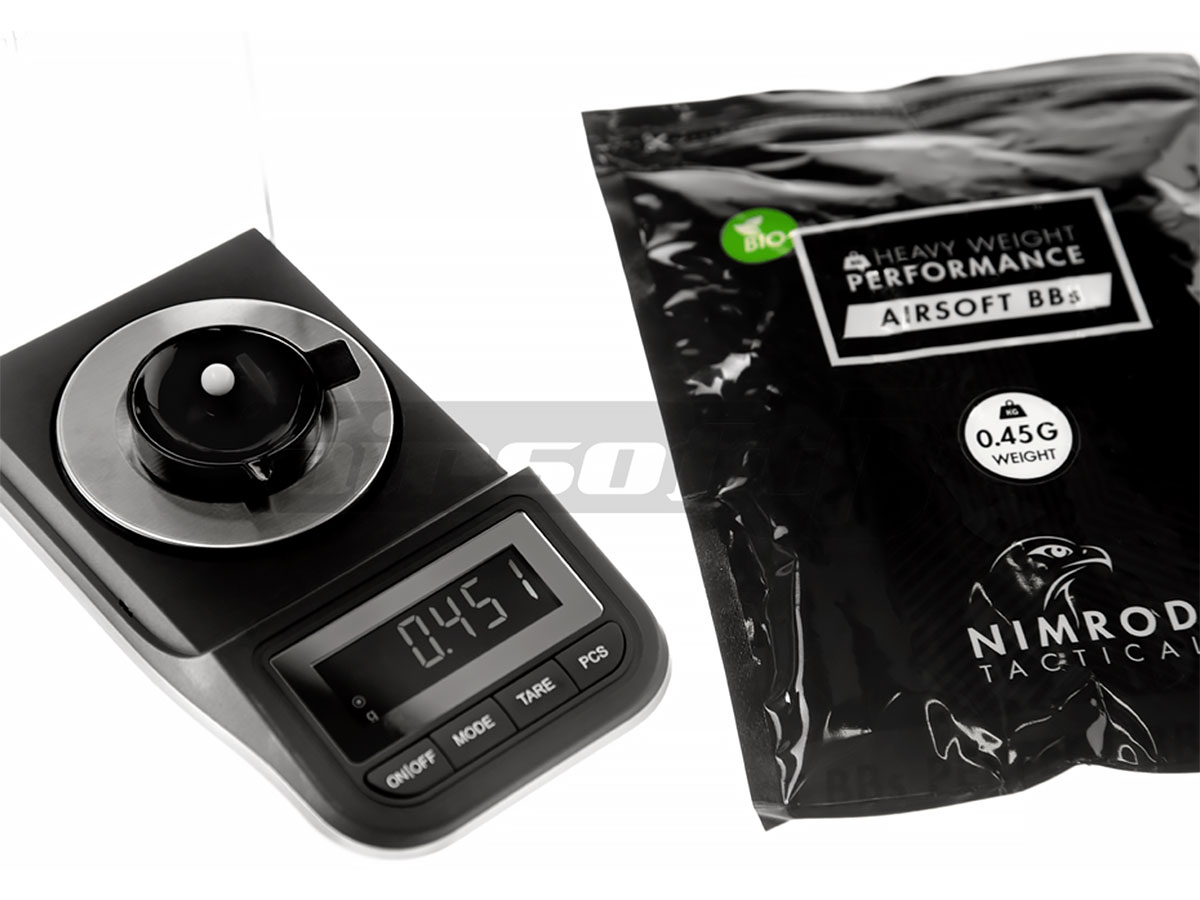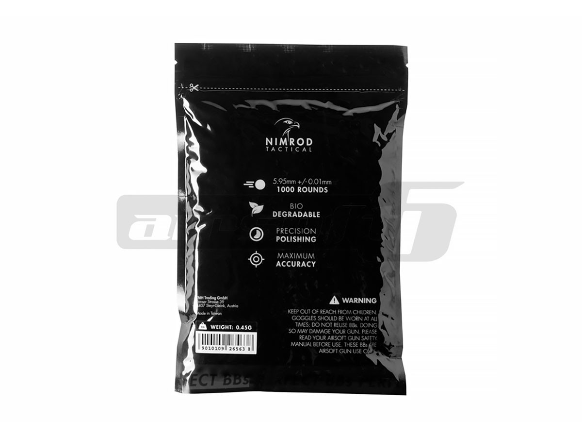 Bile de precizie fabricate de Nimrod. Bilele au o greutate de 0.45g si un diametru de 6 mm. Aceste bile sunt fabricate din compusi organici nontoxici astfel in anumite conditii de temperatura si umiditate se descompun fara urme. Finisarea acestor bile este extraordinara, luciul obtinut in urma numeroaselor procese de slefuire, este unul aproape perfect. Alimentarea cu bile a replicii este fara probleme iar alunecarea pe teava interna este cat se poate de lina. Precizia obtinuta prin folosirea acestor bile este una foarte buna datorata consistentei materialului din care sunt fabricate.