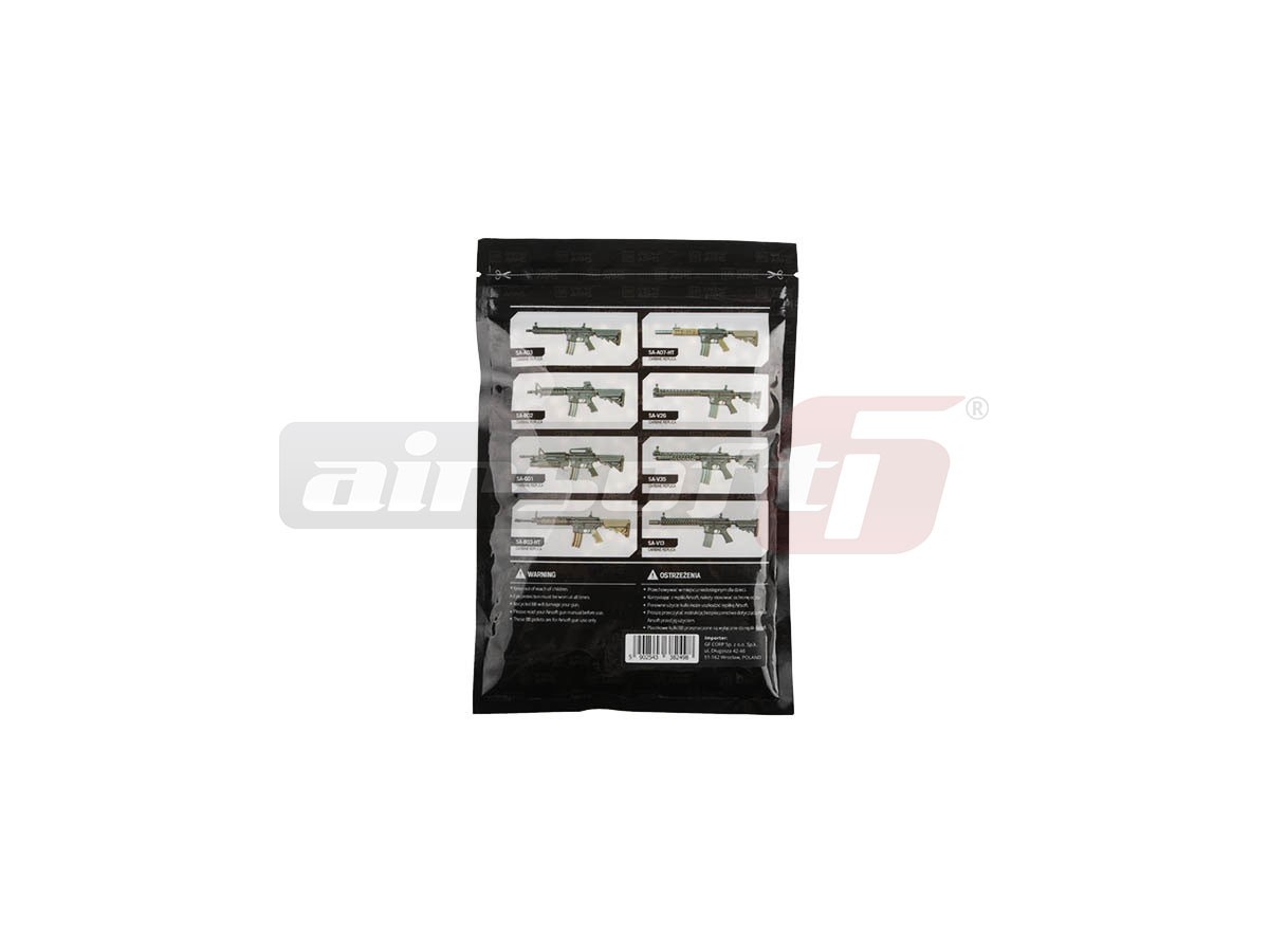 Bile de precizie fabricate de Specna Arms. Bilele au o greutate de 0.36g si un diametru de 5.95 mm cu o marja de eroare de 0.01 mm. Aceste bile sunt atent prelucrate astfel obtinand un finisaj lucios, perfect, imbunatatind alimentarea iar contactul cu teava de precizie este cat se poate de lin. Materialul din care sunt fabricate bilele este de buna calitate astfel turnarea bilelor este uniforma si fara imperfectiuni. Folosite cu o teava de precizie buna aceste bile sunt foarte precise. Bilele sunt fabricate din plastic si sunt ambalate in pungi de 1000 bile.