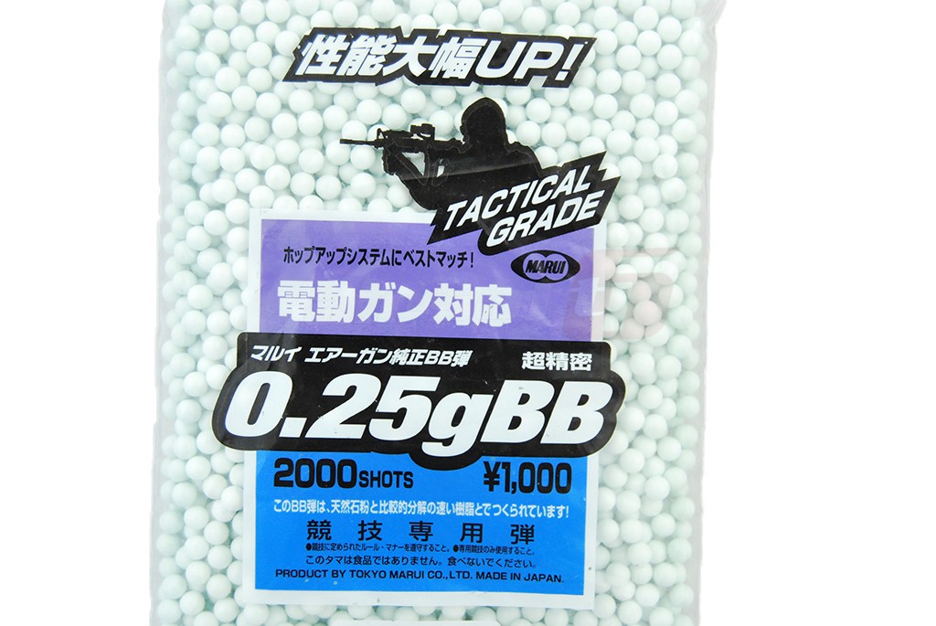 Bile pentru airsoft de cea mai buna calitate fabricate de Tokyo Marui, unul dintre cei mai mari si importanti producatori de replici de airsoft din lume. Bilele TM sunt fabricate la cele mai inalte standarde. Finisajul si precizia acestor bile sunt deosebite. Datorita diametrului relativ mai mic decat majoritatea bilelor existente pe piata si anume 5.92 mm cu o toleranta de 0.005 mm. aceste bile pot fi utilizate cu succes impreuna cu tevile de precizie cu diametre interne foarte mici; 6.02, 6.01. 6.00, obtinand performante foarte bune.