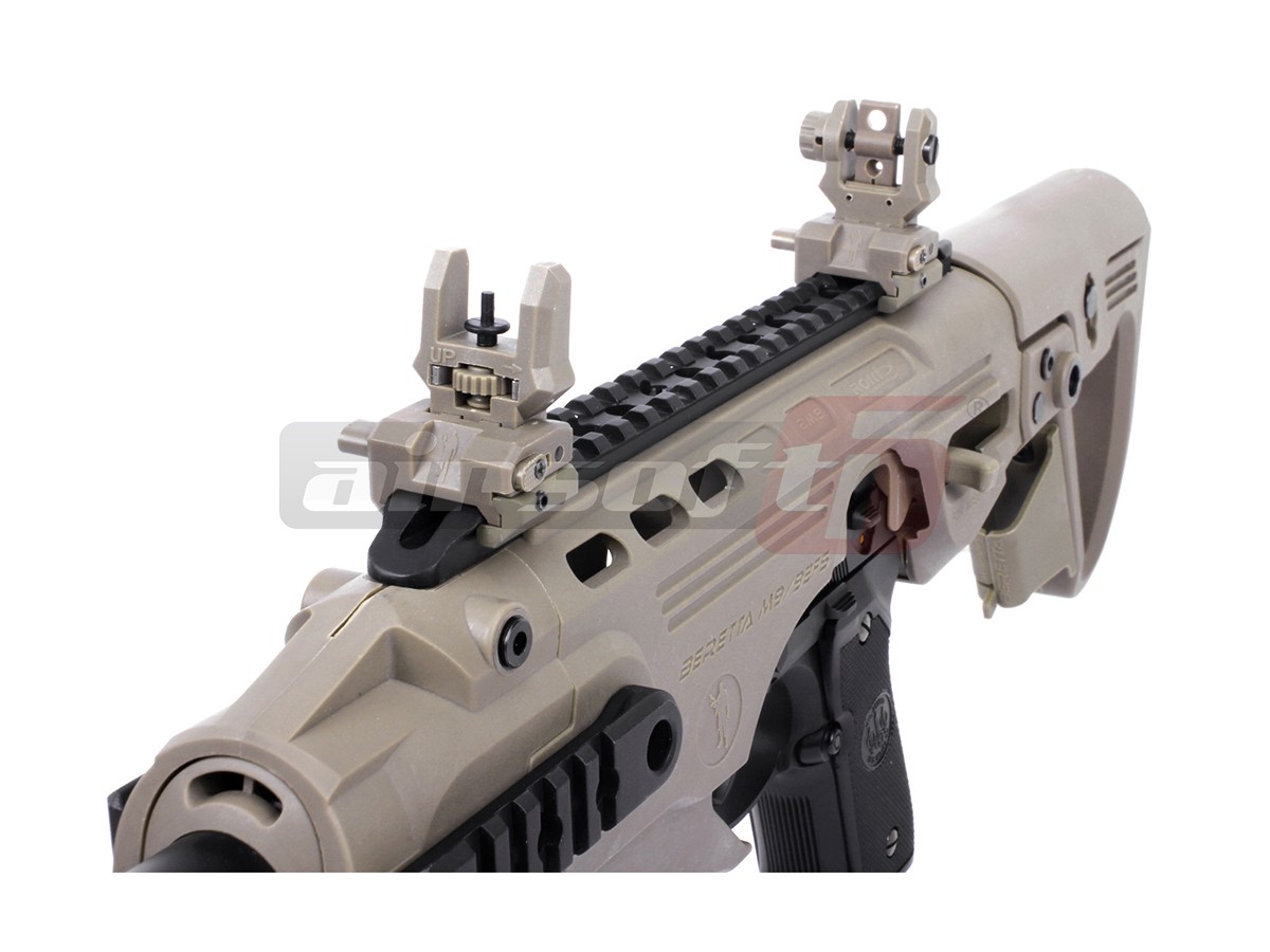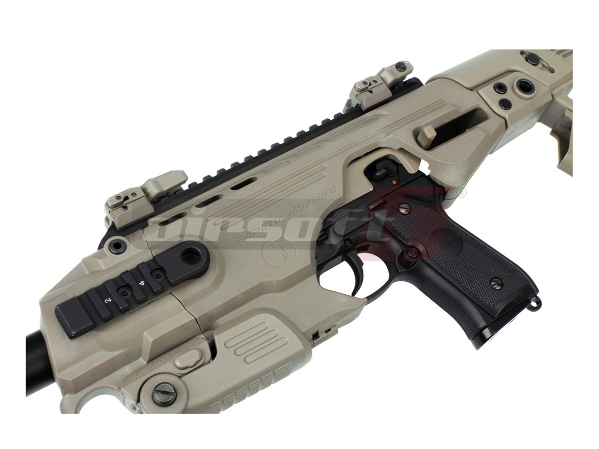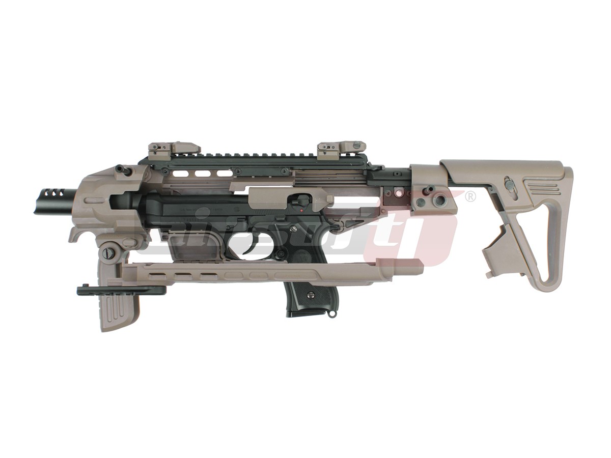 Acest dispozitiv oferit de CAA este un adaptor ce permite folosirea unui pistol normal precum o arma de tip SMG, oferind astfel un control imbunatatit asupra preciziei. Asadar, pentru a putea functiona va fi nevoie si de o replica de pistol ce nu este inclusa in pachetul de fata. Modelul actual este destinat platformelor Beretta si astfel majoritatea platformelor ce imita Beretta M9 ar trebui sa se potriveasca.