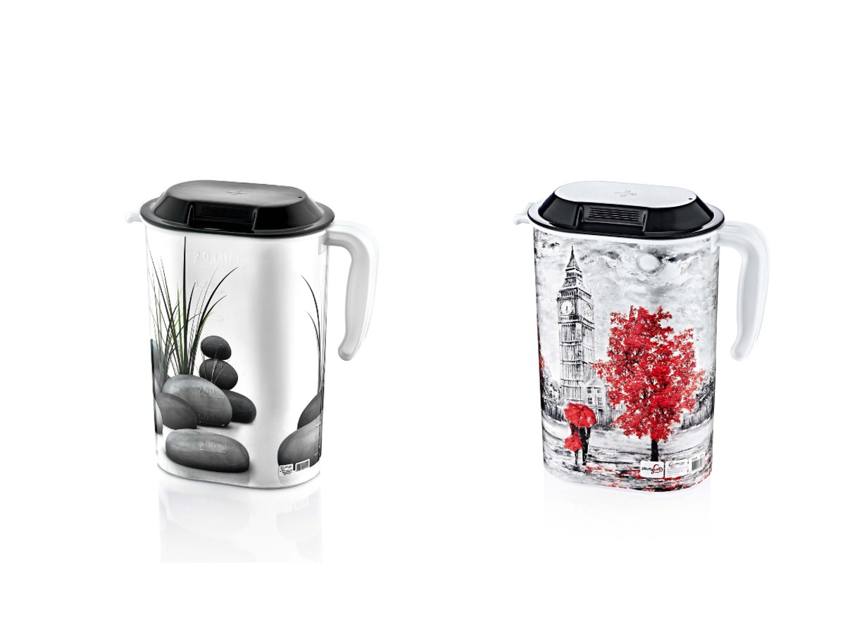 Cana ovala cu capacitatea de 2 litri. Cana Go Go este dotata cu un maner pentru o priza buna si este gradata. Capacul etanseaza bine. Forma canii permite un bun transfer al continutului in alt recipient.