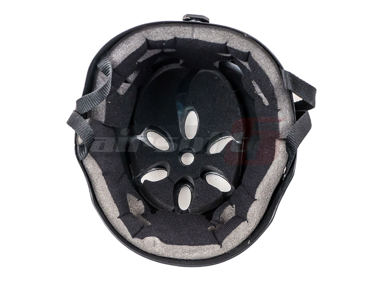 Casca pentru protetia capului in timpul jocurilor de airsoft. Este fabricata din plastic fiind astfel rezistenta si usoara in acelas timp. In partea superioara se pot observa orificii pentru eliminarea caldurii generata in timpul actiunii. In interior exista captuseala din burete moale si material fin. Designul sau permite o buna manevrabilitate neinterferand cu sunetul si campul vizual al utilizatorului. Pentru asigurarea ei pe cap exista curele reglabile din nylon impletit prevazute cu carabina. In partea din spate a castii exista un suport pentru elasticul ochelarilor de protectie in cazul in care vor fi utilizati.