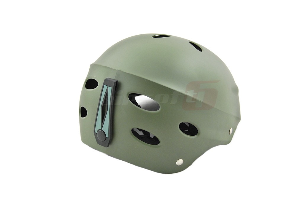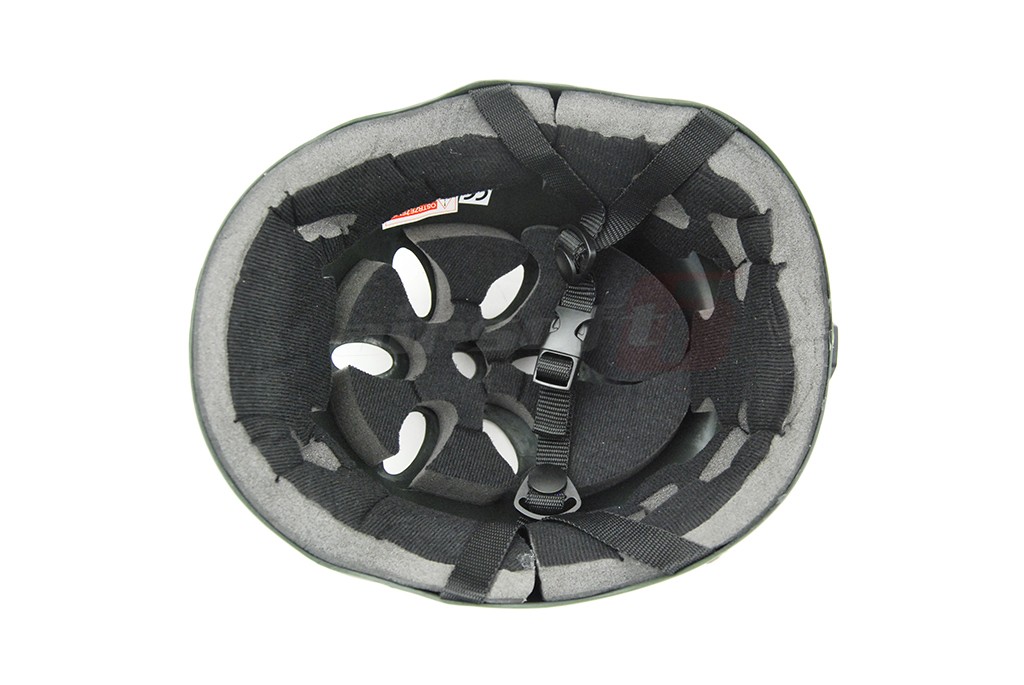 Casca pentru protetia capului in timpul jocurilor de airsoft. Este fabricata din plastic fiind astfel rezistenta si usoara in acelas timp. In partea superioara se pot observa orificii pentru eliminarea caldurii generata in timpul actiunii. In interior exista captuseala din burete moale si material fin. Designul sau permite o buna manevrabilitate neinterferand cu sunetul si campul vizual al utilizatorului. Pentru asigurarea ei pe cap exista curele reglabile din nylon impletit prevazute cu carabina. In partea din spate a castii exista un suport pentru elasticul ochelarilor de protectie in cazul in care vor fi utilizati.