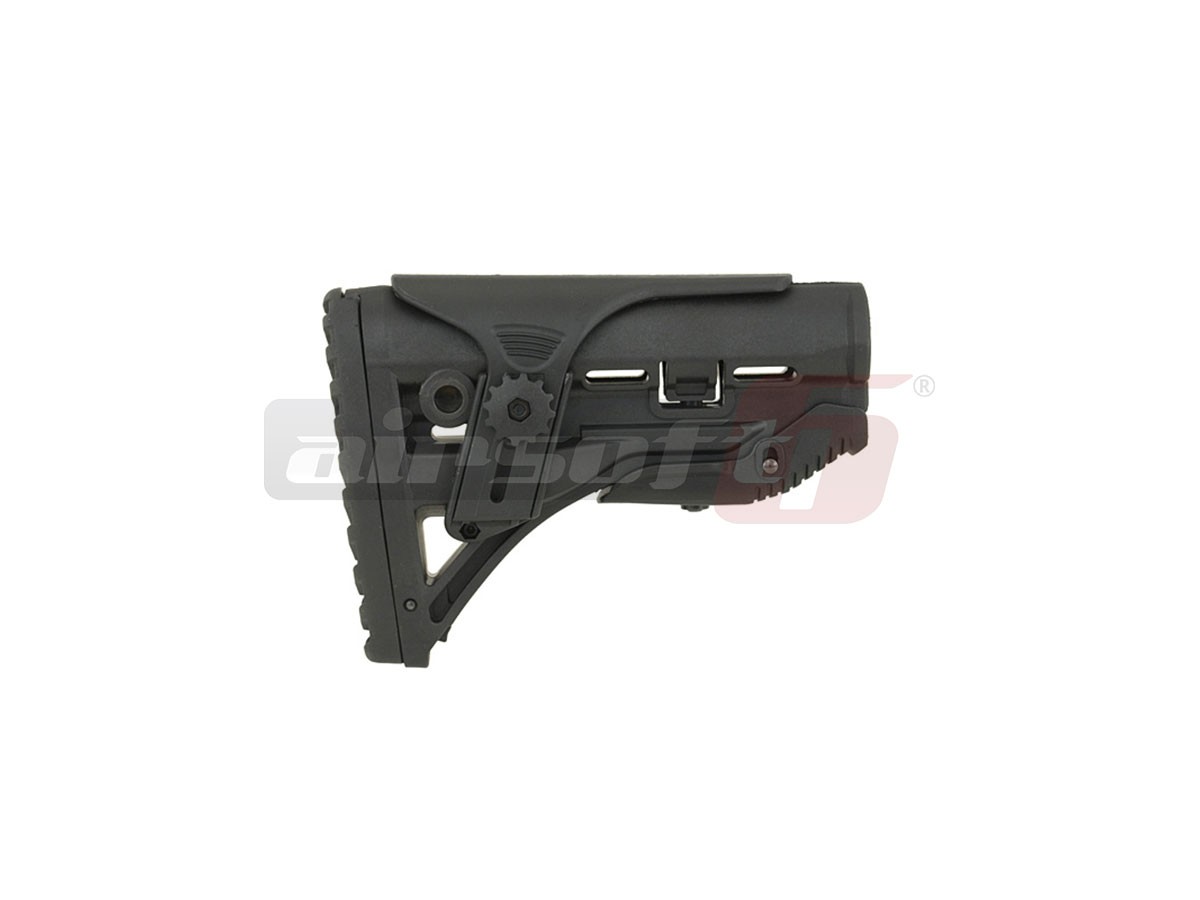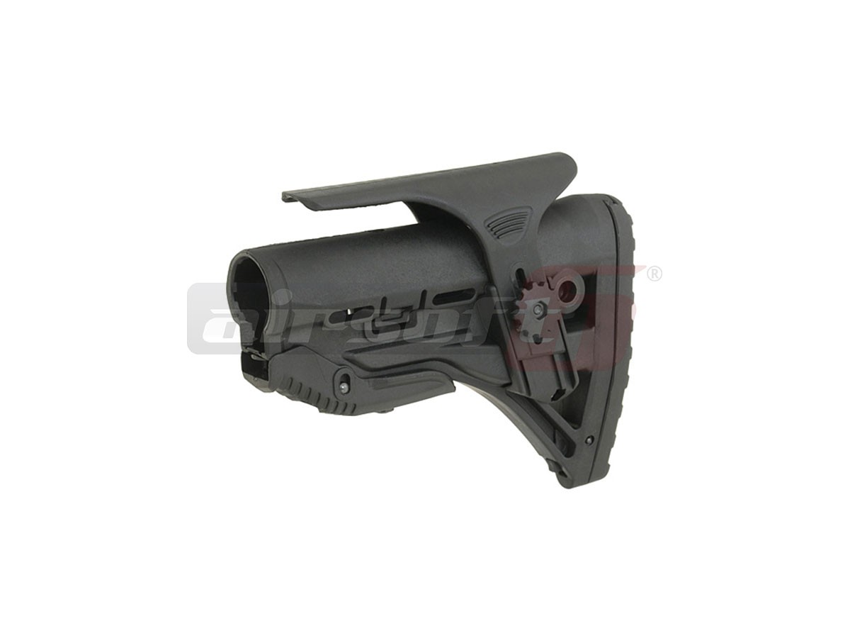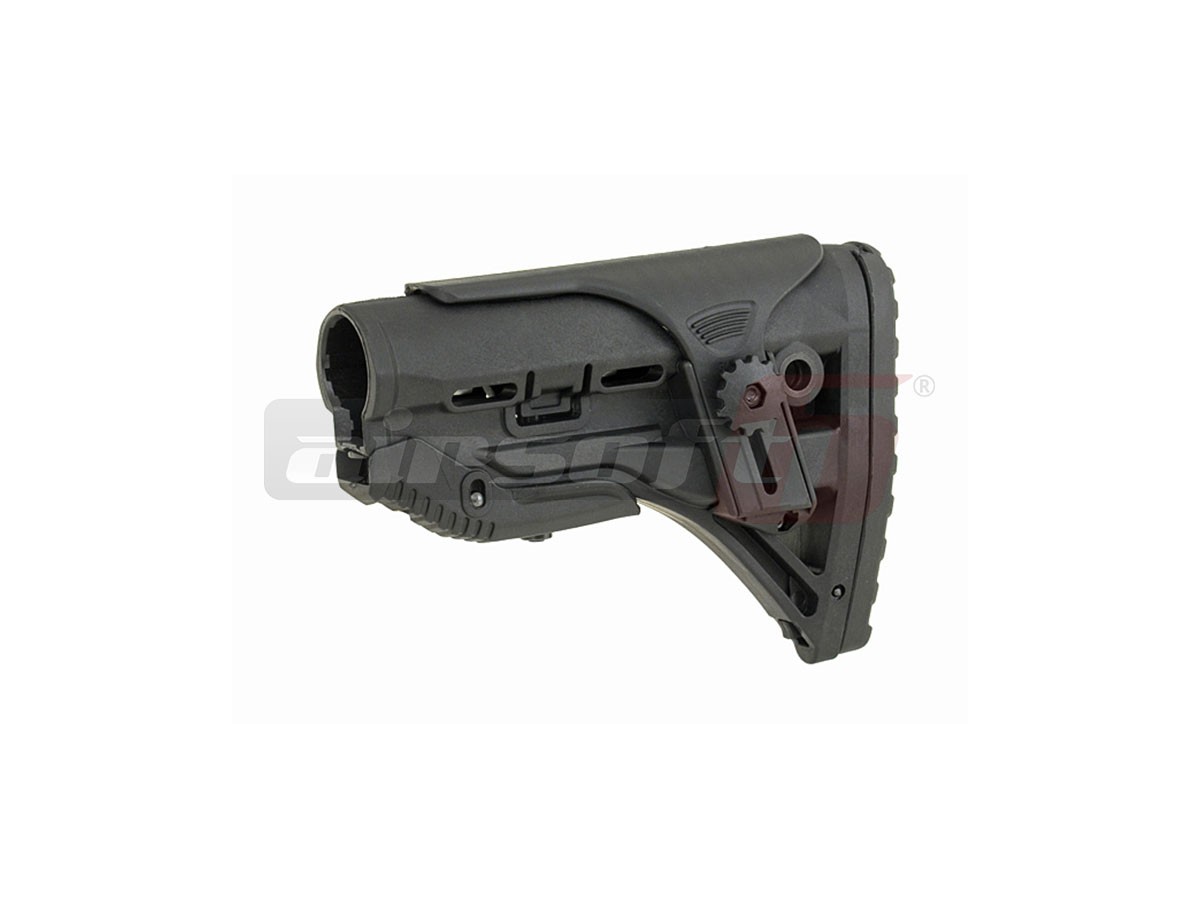 Va prezentam un pat tactic cel putin interesant fabricatie Castelan. Acest pat este destinat platformelor de airsoft AEG tip M4. Este fabricat din plastic ABS rezistent la uzura. Asemenea paturilor de M4 clasice, permite reglajul dimensiunii totale pentru a oferi utilizatorului pozitia optima. Deasemenea pentru imbunatatirea manevrabilitatii, in spatele patului exista o sectiune din plastic cauciucat ce ofera o priza foarte buna. Indepartand sectiunea moale vom descoperi un spatiu destinat acumulatorilor de schimb pentru diverse dispozitive electronice ce pot fi montate pe replica de airsoft in cauza.