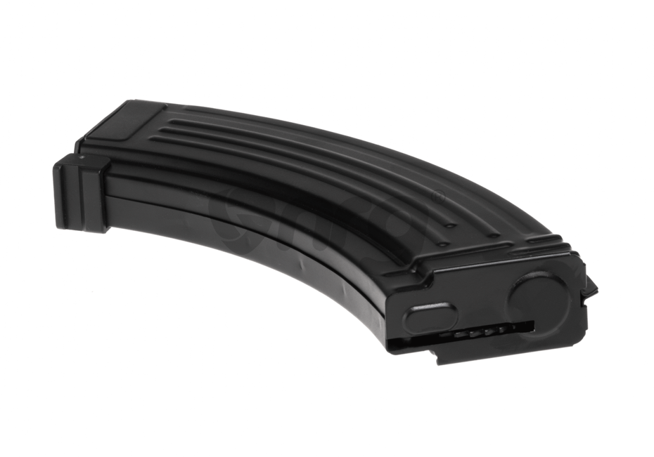 Incarcator de airsoft Hi Cap destinat platformelor Ak47. Acest incarcator de airsoft are o capacitate de 600 de bile de 6mm. Principiul de functionare este bazat pe comprimarea unui arc intern in momentul alimentarii cu bile. Este construit din metal iar interiorul este din plastic de calitate.
