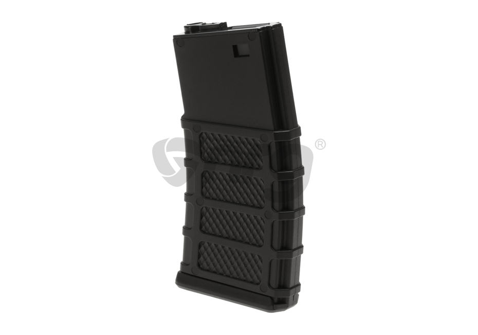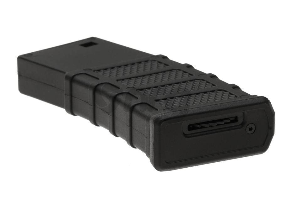 Incarcator de airsoft Hi Cap destinat platformelor M4. Acest incarcator de airsoft are o capacitate de 300 de bile de 6mm. Principiul de functionare este bazat pe comprimarea unui arc intern in momentul alimentarii cu bile. Este construit din metal iar interiorul este din plastic de calitate.