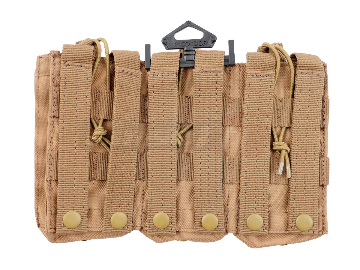Acest buzunar marca Condor este special creat pentru a putea fi atasat platformelor cu prindere de tip Molle. Acest sistem de prindere este special conceput pentru a asigura foarte bine legatura intre platforma si accesorii. Materialele folosite sunt de calitate iar cusaturile sunt rezistente. Fiecare buzunar poate gazdui 1 incarcator de tip M4/M16 sau cate 1 incarcator de AK. Pe partea externa exista cate un buzunar pentru incarcatoare de pistol, gazduind in total 3 bucati. Acest buzunar utilitar este ideal pentru accesorizarea vestelor sau a centurilor in ideea de a putea mari cantitatea de incarcatoare ce poate fi carata.