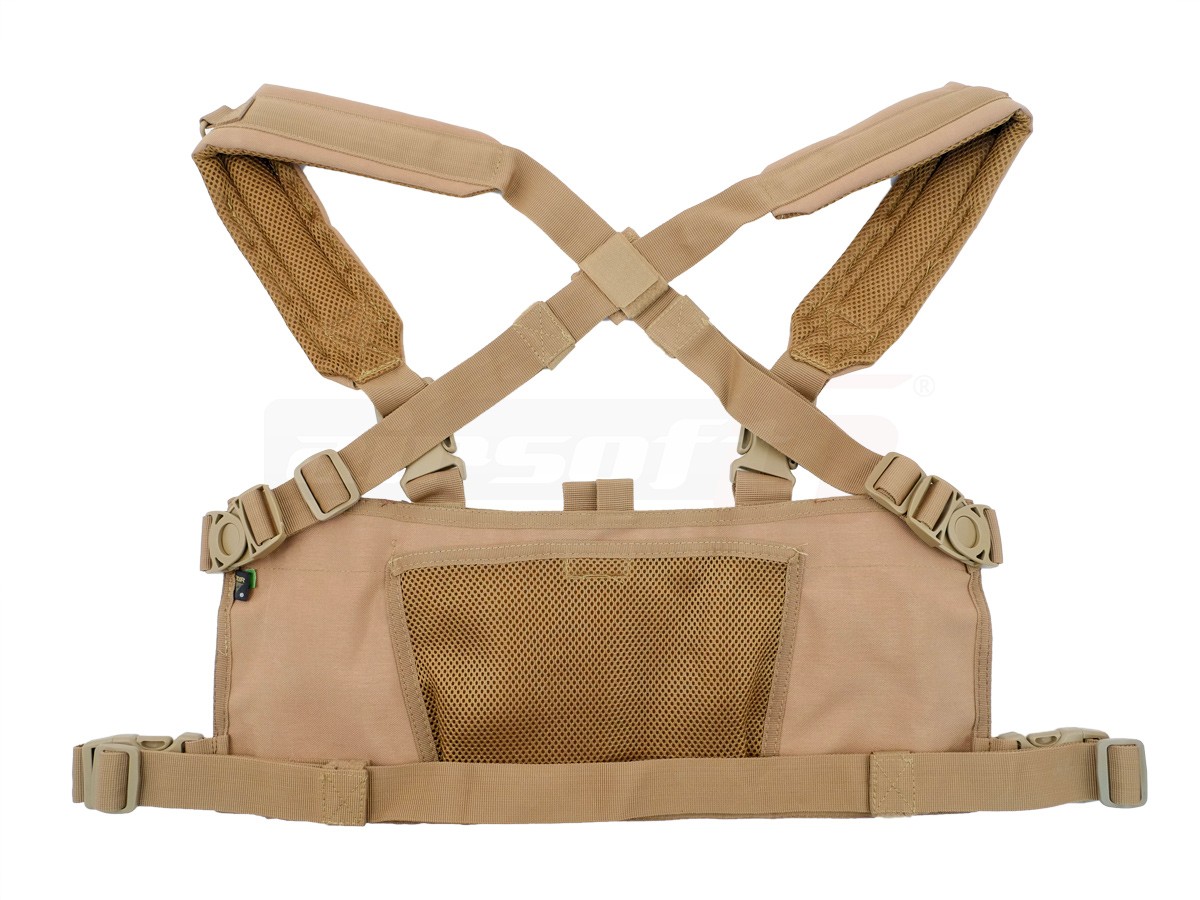 Acest harnasament tactic se numeste Rapid Assault Chest Rig si asa cum sugereaza si denumirea reprezinta o structura menita sa se ancoreze in partea frontala a utilizatorului dar fara a acoperi spatele, menita sa sustine elemente tactice prevazute cu sistemele de prindere de tip molle. Materialul din care este fabricat este nylonul impletit, captusit, rezistent la uzura si umiditate. Partea frontala prezinta o suprafata prevazuta cu sisteme de prindere molle dar si cu buzunare incorporate, permitand inmagazinarea directa a incarcatoarelor pe harnasament. Fiecare dintre cele 6 buzunare poate gaznui un incarcator de M4 sau chiar cate un incarcator de AK. Sistemele cu benzi elastice pot asigura pastrarea incarcatoarelor pe pozitie. Bretelele reglabile de fixare se incruciseaza in partea din spate pentru a imbunatati stabilitatea ansamblului iar in partea mijlocului exista inca o bretea orizontala deasemenea reglabila. Carabinele cu care bretelele de fixare se fixeaza, sunt realizate din plastic ABS iar designul celor superioare permite rotirea acestora pentru imbunatatirea confortului atunci cand utilizatorul este intens activ.