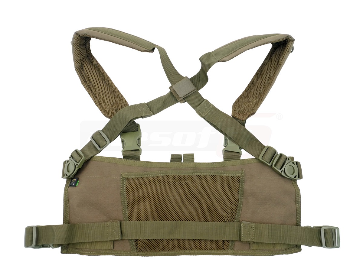 Acest harnasament tactic se numeste Rapid Assault Chest Rig si asa cum sugereaza si denumirea reprezinta o structura menita sa se ancoreze in partea frontala a utilizatorului dar fara a acoperi spatele, menita sa sustine elemente tactice prevazute cu sistemele de prindere de tip molle. Materialul din care este fabricat este nylonul impletit, captusit, rezistent la uzura si umiditate. Partea frontala prezinta o suprafata prevazuta cu sisteme de prindere molle dar si cu buzunare incorporate, permitand inmagazinarea directa a incarcatoarelor pe harnasament. Fiecare dintre cele 6 buzunare poate gaznui un incarcator de M4 sau chiar cate un incarcator de AK. Sistemele cu benzi elastice pot asigura pastrarea incarcatoarelor pe pozitie. Bretelele reglabile de fixare se incruciseaza in partea din spate pentru a imbunatati stabilitatea ansamblului iar in partea mijlocului exista inca o bretea orizontala deasemenea reglabila. Carabinele cu care bretelele de fixare se fixeaza, sunt realizate din plastic ABS iar designul celor superioare permite rotirea acestora pentru imbunatatirea confortului atunci cand utilizatorul este intens activ.