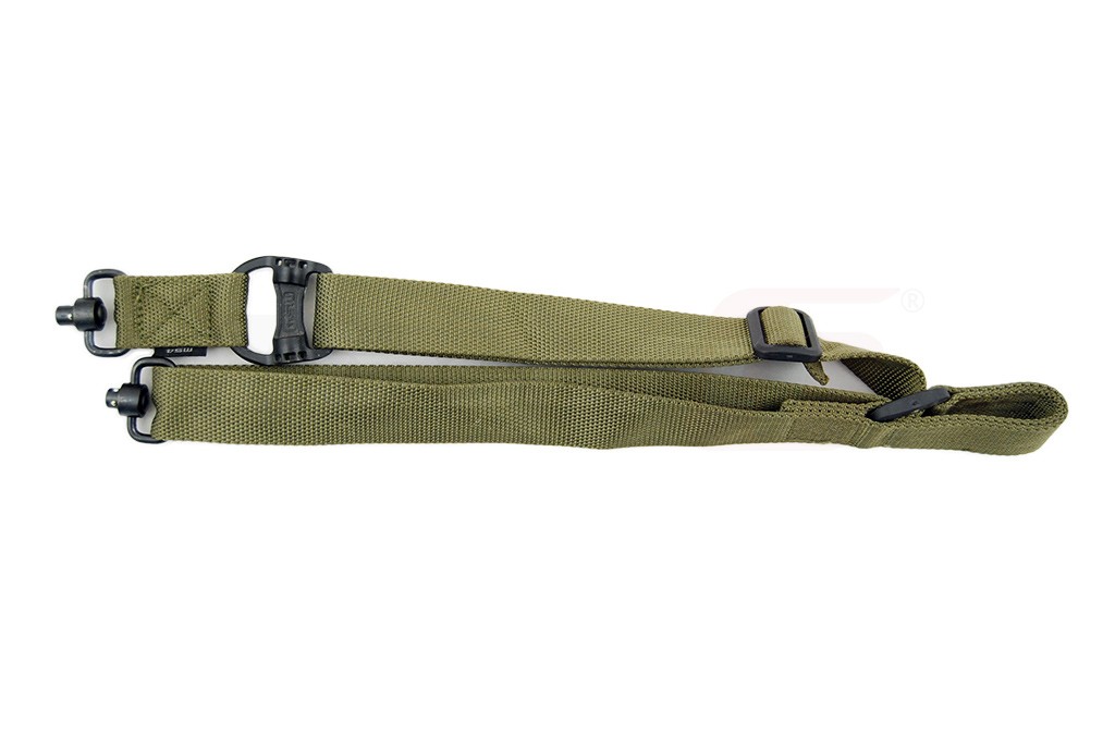 Curea cu prindere in 1 sau 2 puncte cu sistem de detasare rapid. Acest sistem de prindere este fabricat de CS. Cureaua ofera posibilitatea de a cupla si decupla sistemul de angajare foarte usor. Utilizand sistemul QD adica Quick Detach in traducere "Cu detasare rapida" permite ca printr-o simpla apasare a unui buton prinderea sa fie eliberata din locas. Cureaua insasi poate fi cuplata in 2 moduri si anume: in doua puncte sau intr-un singur punct. Aceasta curea este reglabila iar acest lucru se poate realiza cu usurinta printr-o singura miscare cu ajutorul buclei de reglaj. Cureaua este realizata din Nylon impletit iar cataramele si sistemele de prindere sunt realizate din metal.