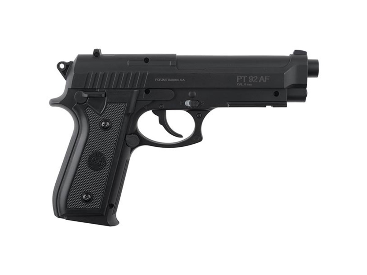 Pistoalele Taurus sunt fabricate in Brazilia de catre compania Forjas Taurus SA. Primele modele copiau intocmai platforma Beretta M92, dar cu timpul au adus mici imbunatatiri in ceea ce priveste functionalitatea si fiabilitatea. Ce a atras foarte mult publicul este pretul scazut fata de produsele originale Beretta si fiabilitatea buna. Un aspect clar diferit de platformele Beretta este siguranta ambidextra ce nu mai este amplasata in partea superioara a mansonului si este adusa mai jos in partea din spate a manerului.