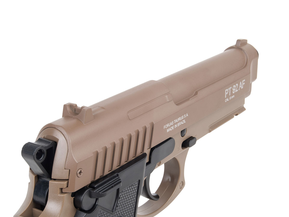 Replica de fara este fabricata de Cybergun si imita modelul Taurus PT92. Corpul pistolului este realizat din metal. In partea frontala exista o sina standard ce va permite o buna accesorizare.