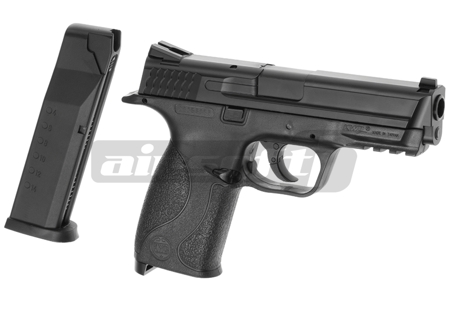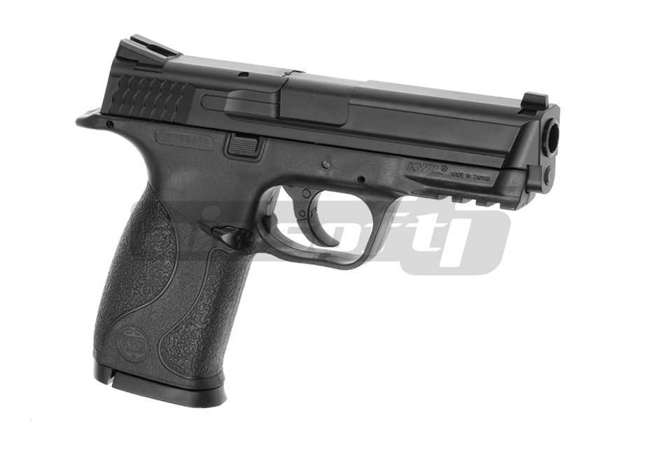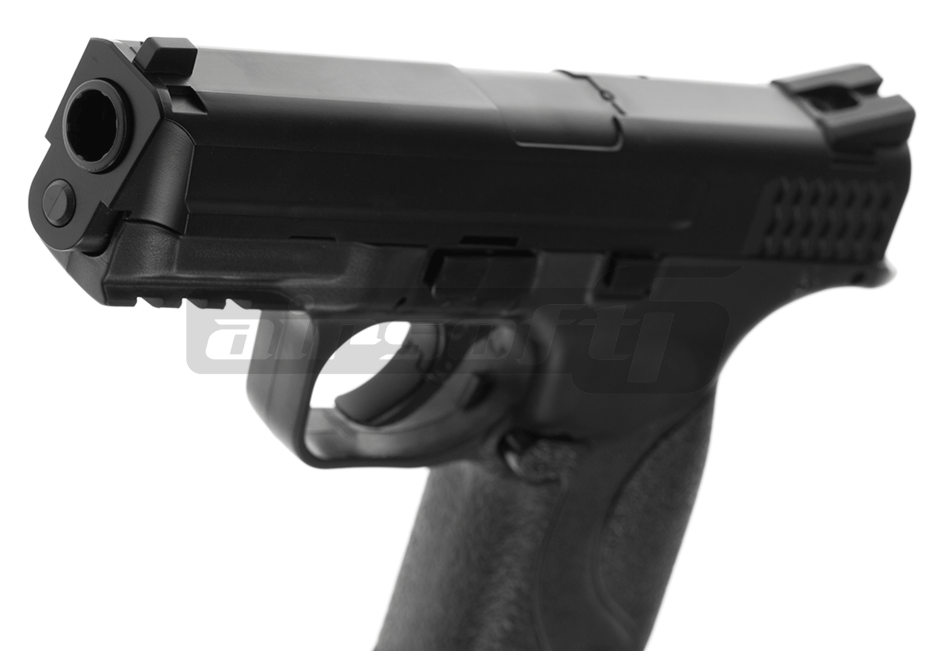 Replica de fata este comercializata de Cybergun si copiaza destul de bine exteriorul armei adevarate. Principiul de functionare este diferit, lipsind reculul cu desavarsire. Partea superioara si inferioara este facuta din plastic ABS. Butoanele laterale sunt strict ornamentale si va recomandam sa nu incercati sa le actionati deoarece se pot rupe. Butonul pentru eliberarea incarcatorului este in partea stanga a manerului.